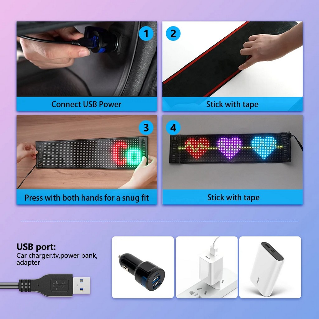 LED Matrix Pixel Panel Display Screen Flexible RGB Car Pattern Graffiti Scrolling Text Animation Shop Reminder Light Bluetooth