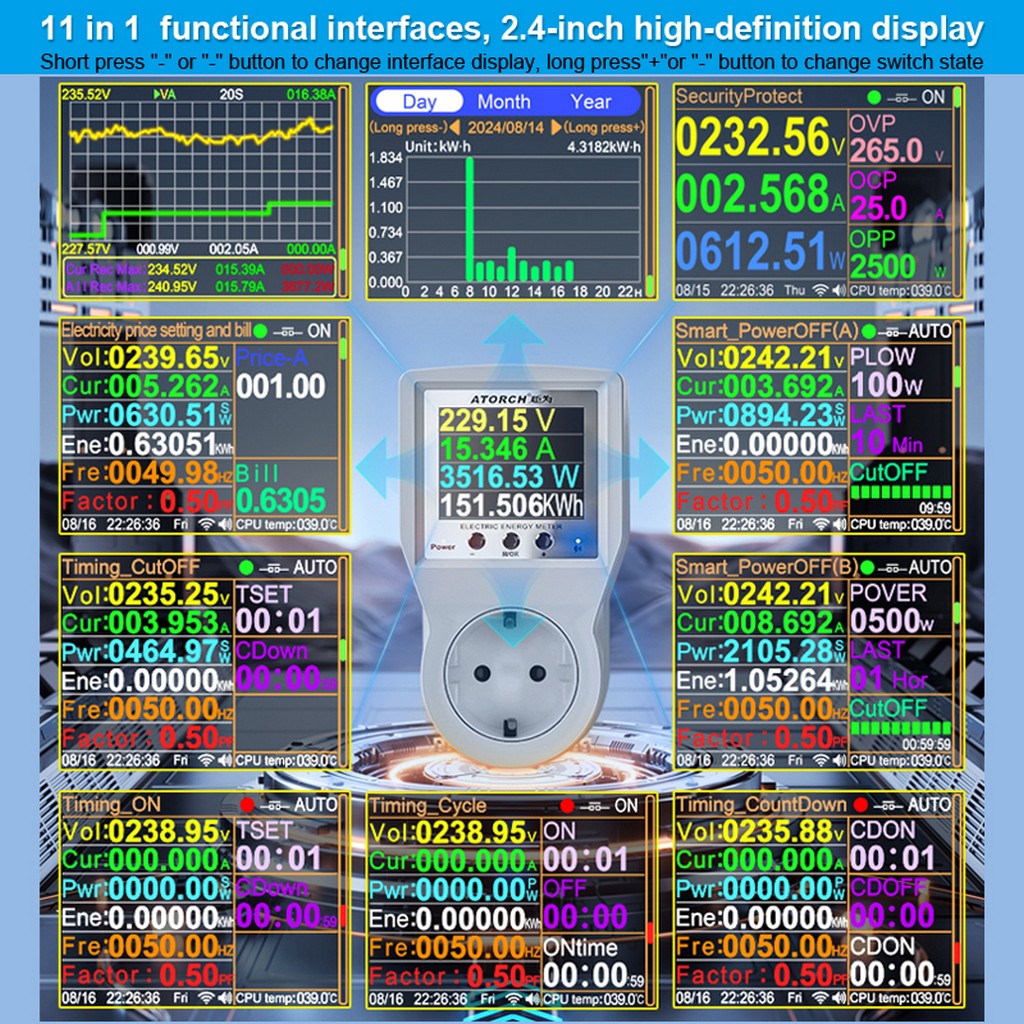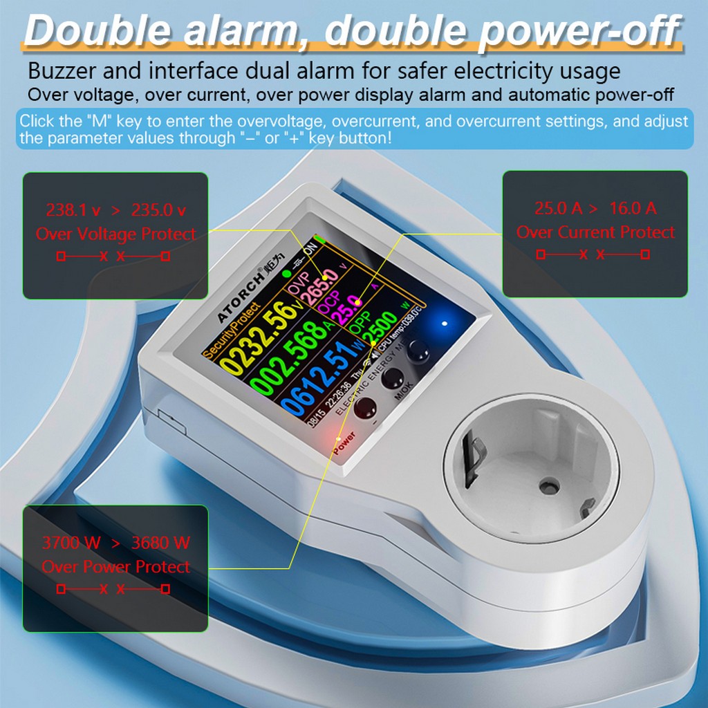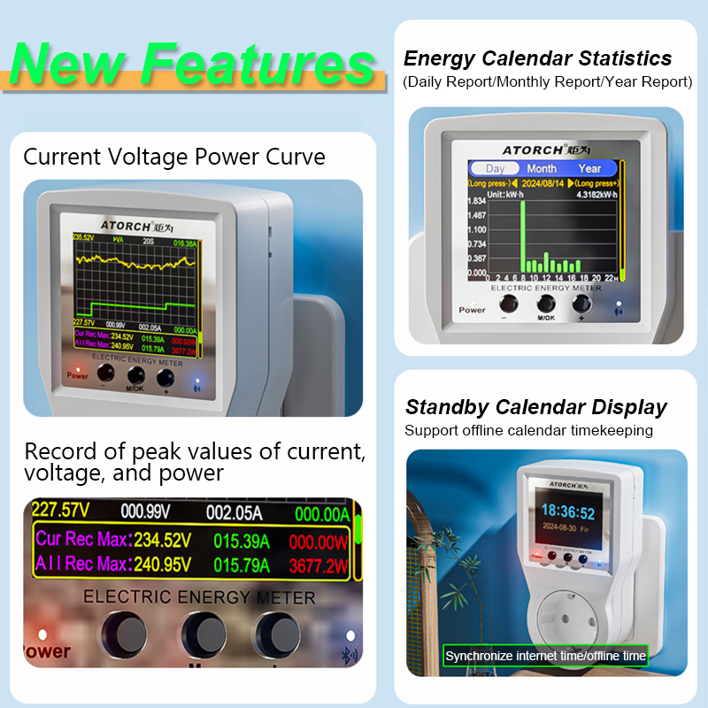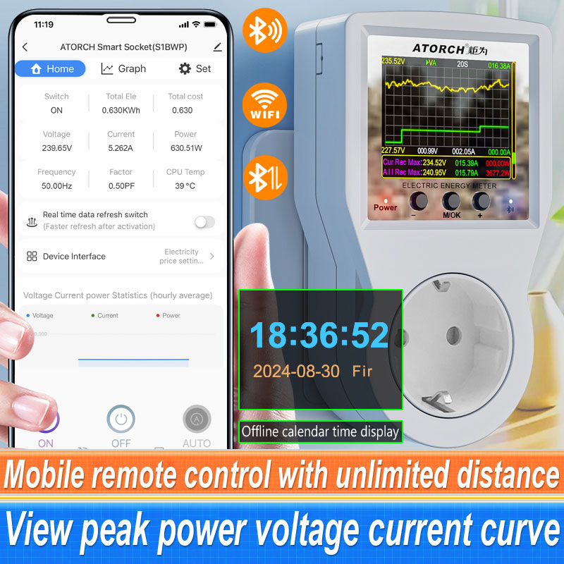 AC85-265V 16A Tuya WiFi Smart EU Socket Voltmeter Ammeter Power Meter Curve Electricity Bill Energy Consumption Analyzer Monitor