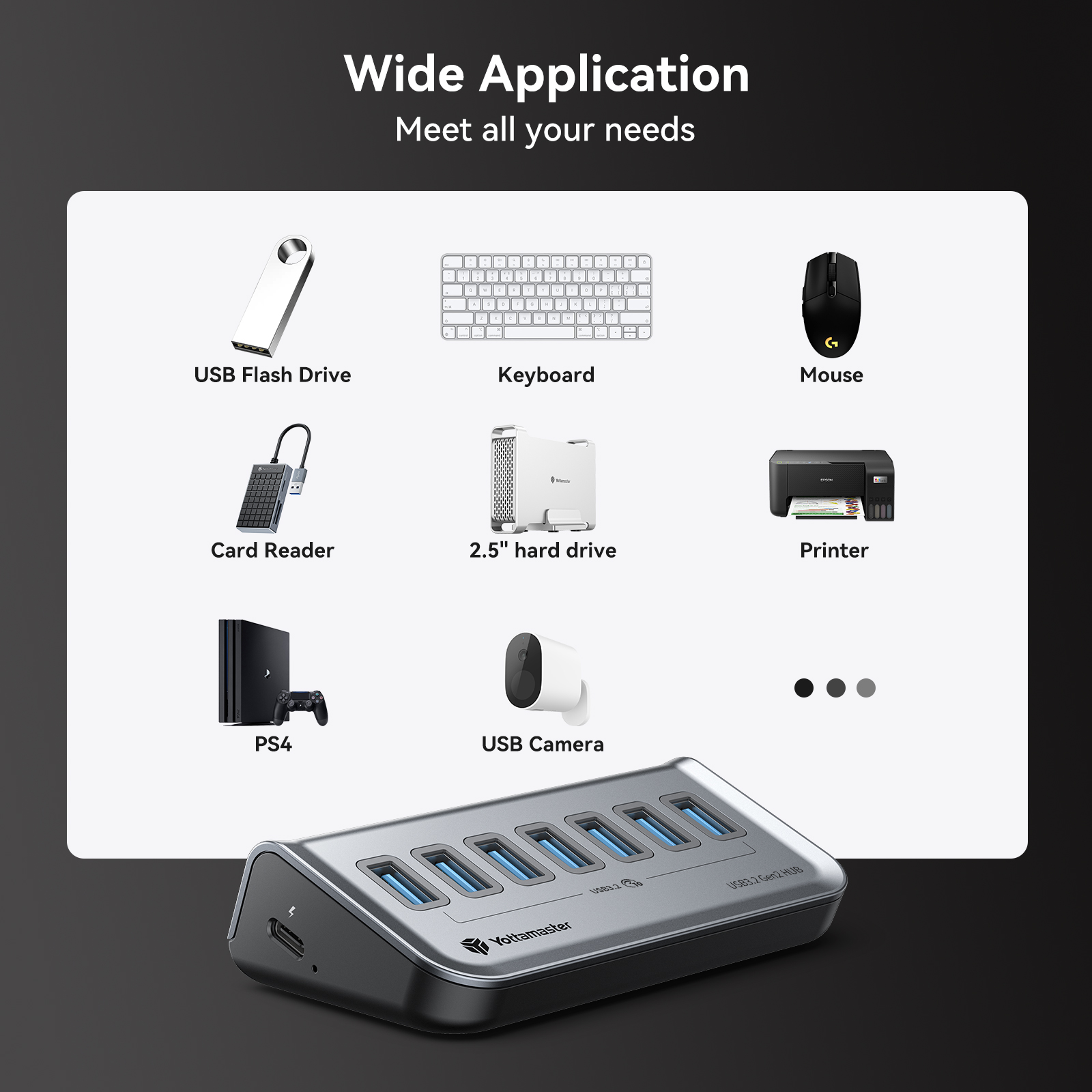 Yottamaster USB-C 3.2 Hub 7 Port USB Hub Powered 5V/3A USB 3.2 Gen2 10Gbps Data Hub for Laptops Surface Pro Portable Hard Drives