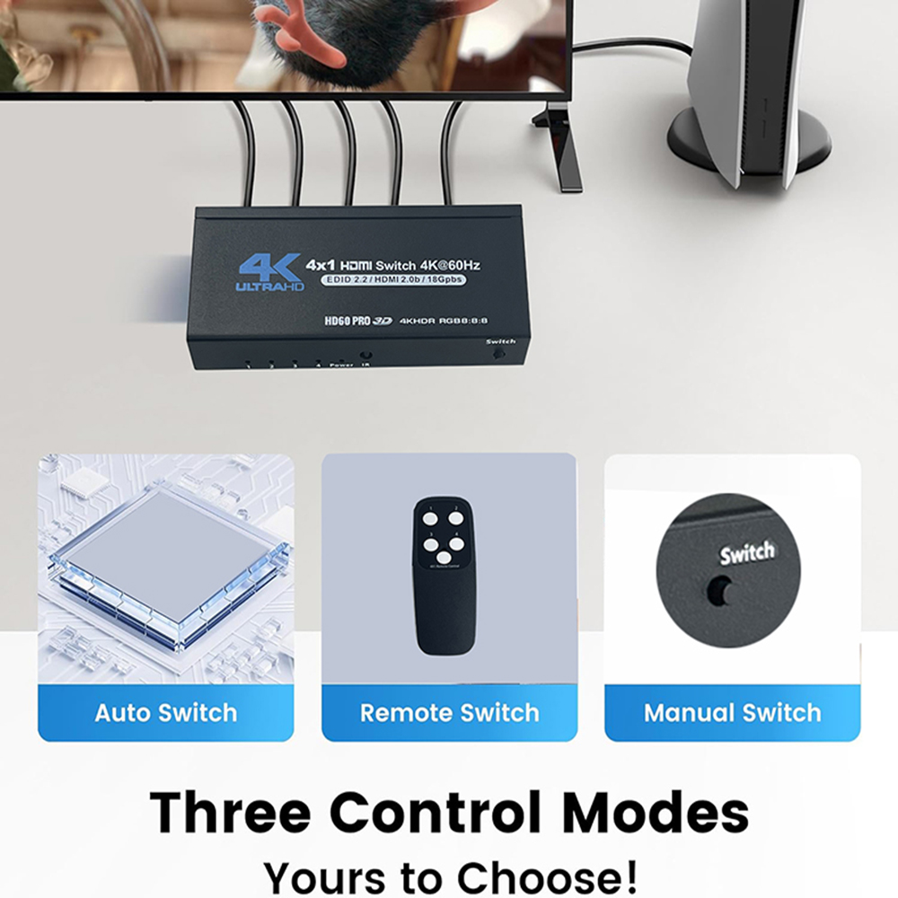 HDMI 2.0 Switch 7 in 1 out 4K 60Hz HDMI Switch 5X1/4X1 HDR HDMI 2.0 Switcher remote for PS5 Xbox Series X NS Switch PC 4K HDTV