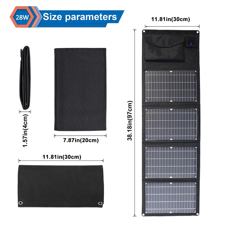 18V 28W Foldable Solar Panel USB Waterproof Portable Monocrystalline Outdoor Solar Charger for 18V Battery/Mobile/Power Bank