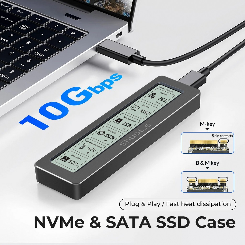 M.2 SSD NVMe Case USB3.2 Gen2 Type C 10Gbps PCIe SSD Case M.2 NVME SATA Enclosure Disk Box Tool Free SSD Aluminum Case