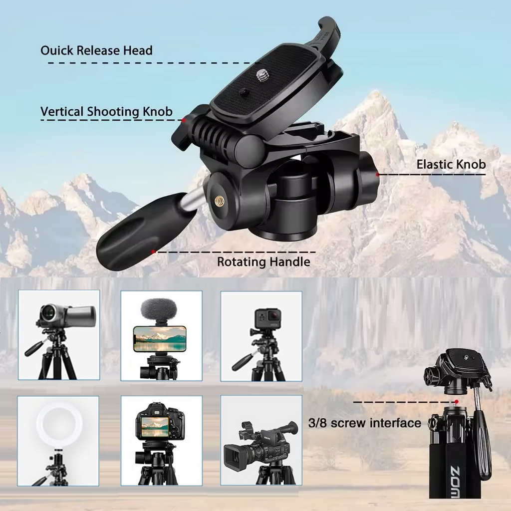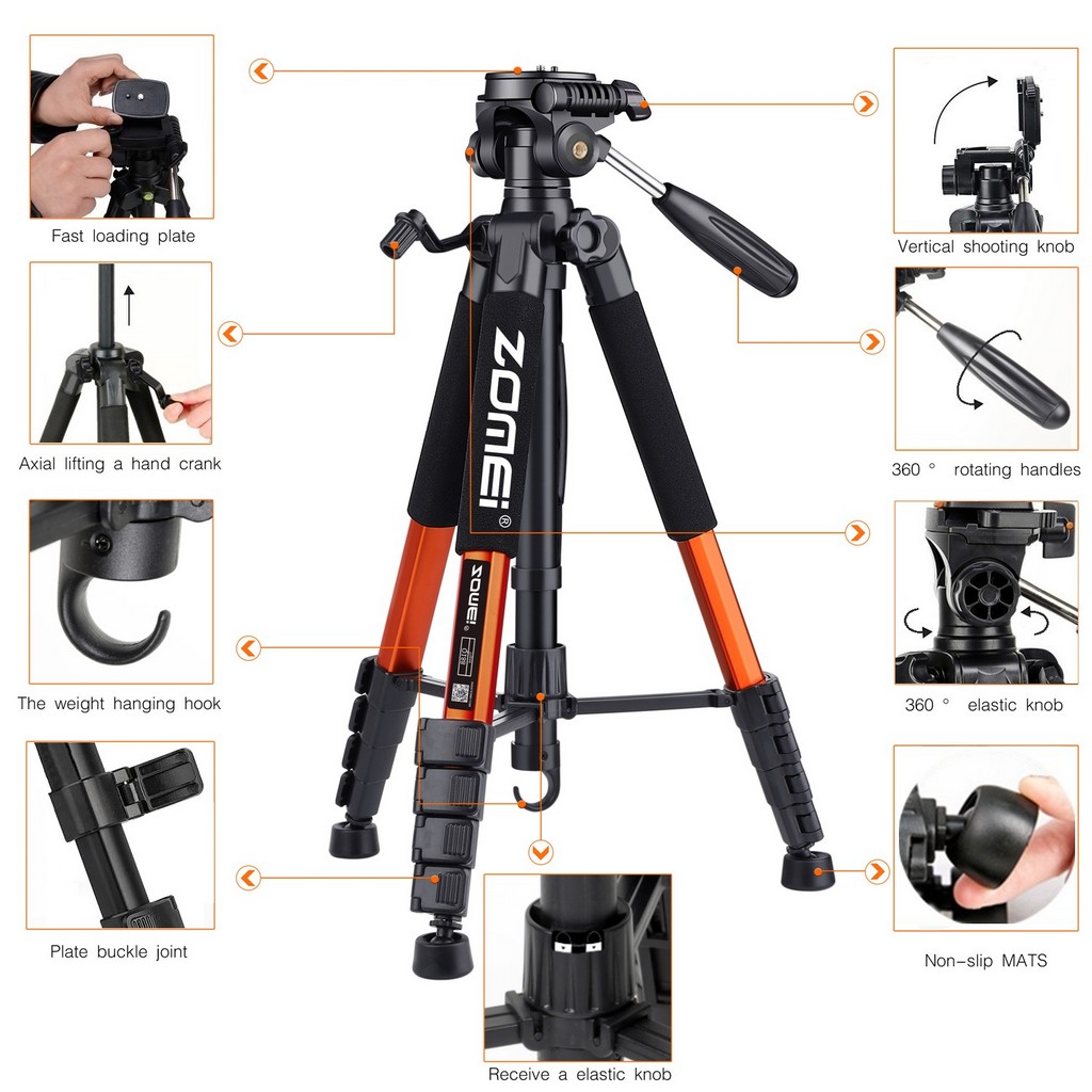 187cm/73.6in Tall Zomei Aluminum Alloy Portable Tripod for Camera DSLR Canon Nikon, 360 Degree Panorama Photography Phone Stand