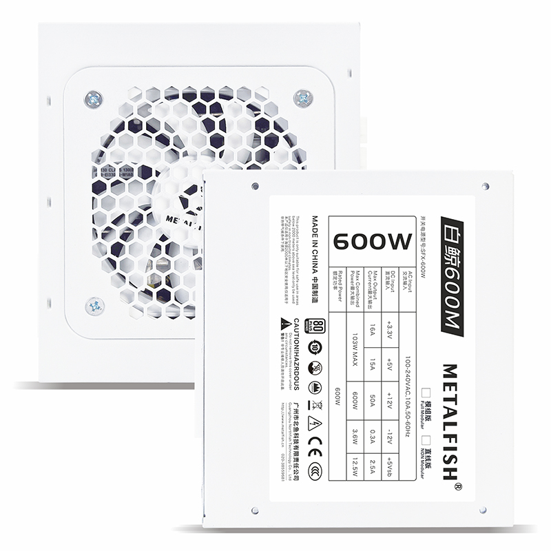 METALFISH SFX 80Plus Bronze 600W PSU White Power Supply Full-Modular For Mini ITX Chassis Small Computer Case 100/220V Input