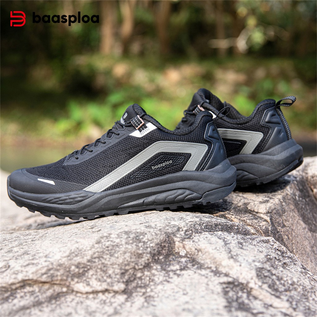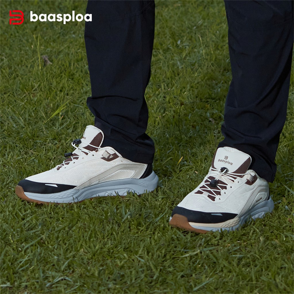 Baasploa Hiking Shoes Men Outdoor Lightweight Breathable Elastic Buckle Sneakers Male Casual Resistant Non Slip Walking Shoes