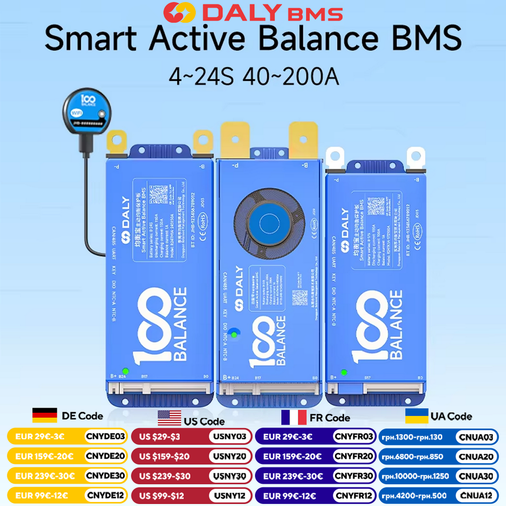Daly BMS Smart Active Balance BMS WiFi 4S 12V 8S 24V 16S 48V 40A 100A 150A 200A for Lifepo4 Batteries 485 DEYE Inverter Scooter