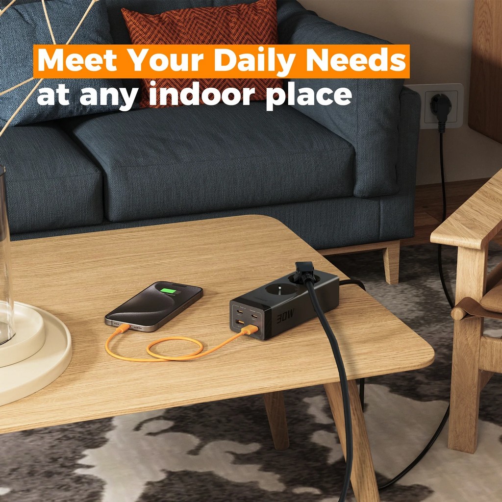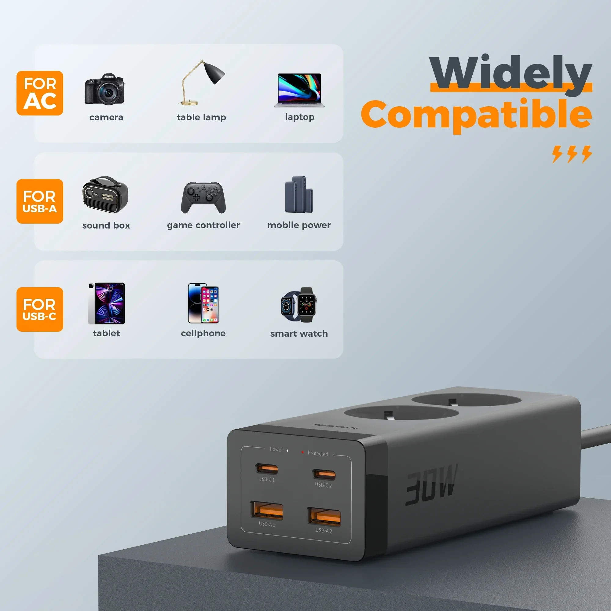 TESSAN 30W GaN Multiple Socket Power Strip with 2 Outlets +2 USB +2 Type C, Cube Socket with 2M Extension Cord Surge Protection