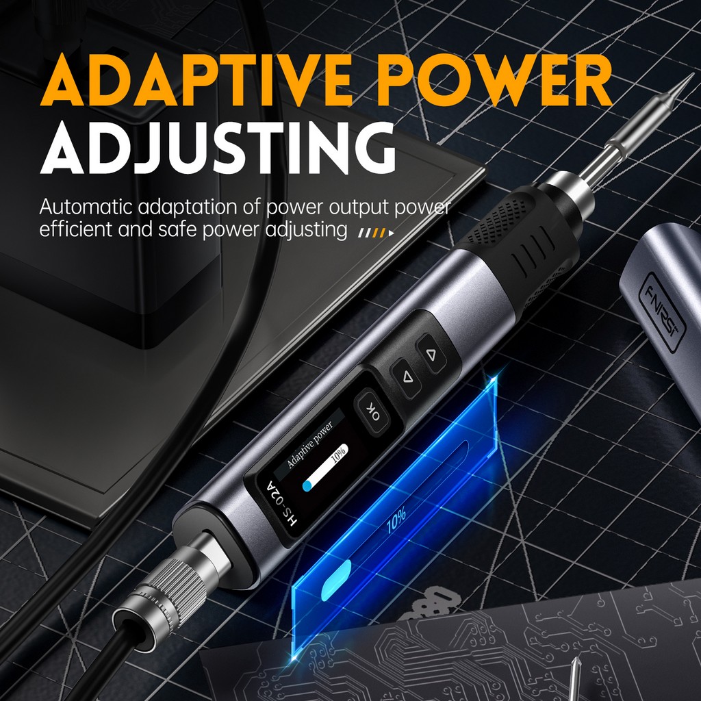 FNIRSI HS-02 Smart Electric Soldering Iron 100-450℃ Temp Adjustable PD 100W Portable Welding Rework Station Solding Irons Kit