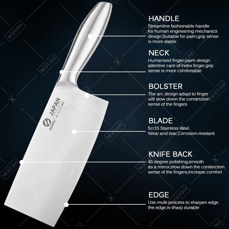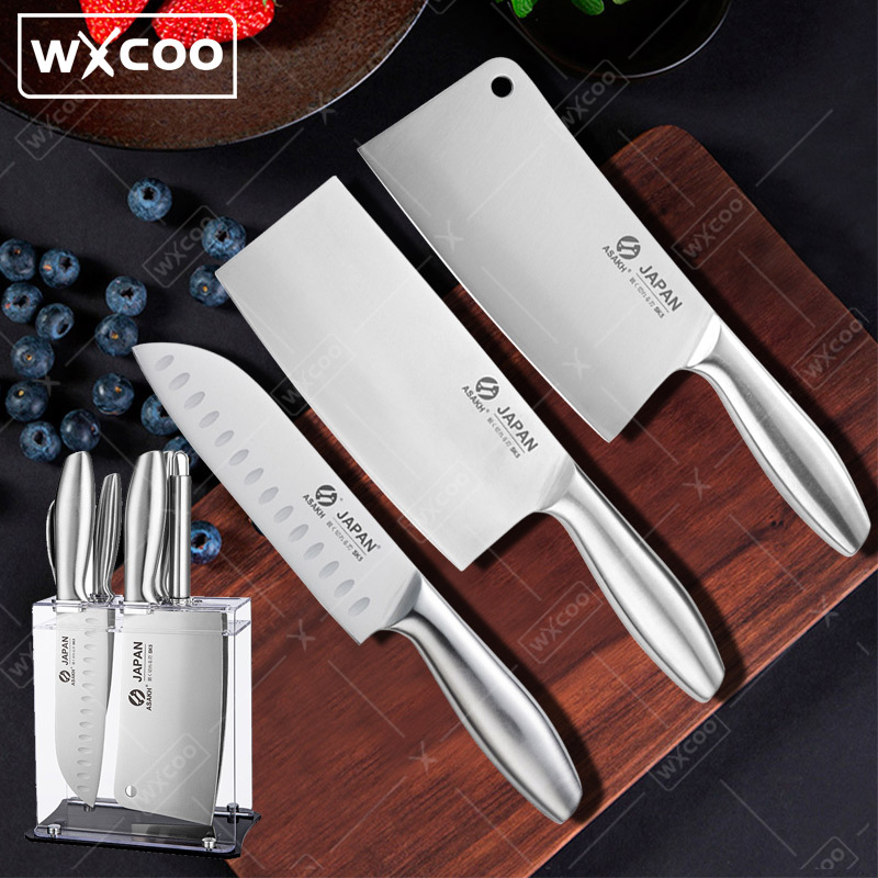 WXCOO 1-7pcs Stainless Steel Kitchen Knives Meat Cleaver Professional Slicing Boning Chef Knife Scissors Sharp Chopping Knife