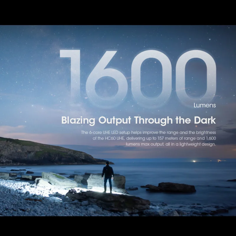 NITECORE HC60 UHE 1600Lumens Max Beam Distance 157m USB-C Rechargeable Headlamp Bulit-in 4000mAh Battery