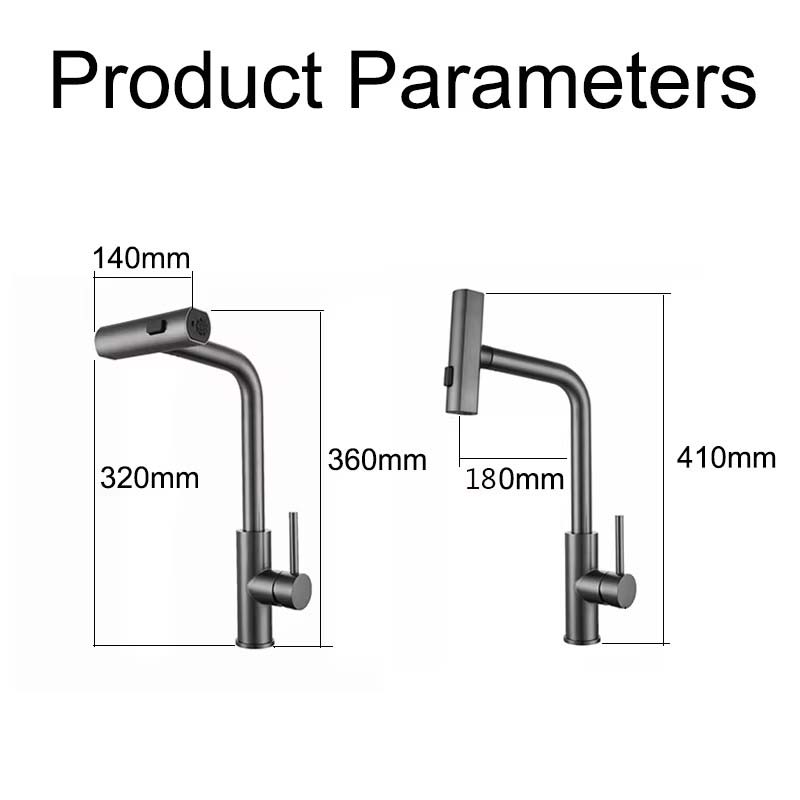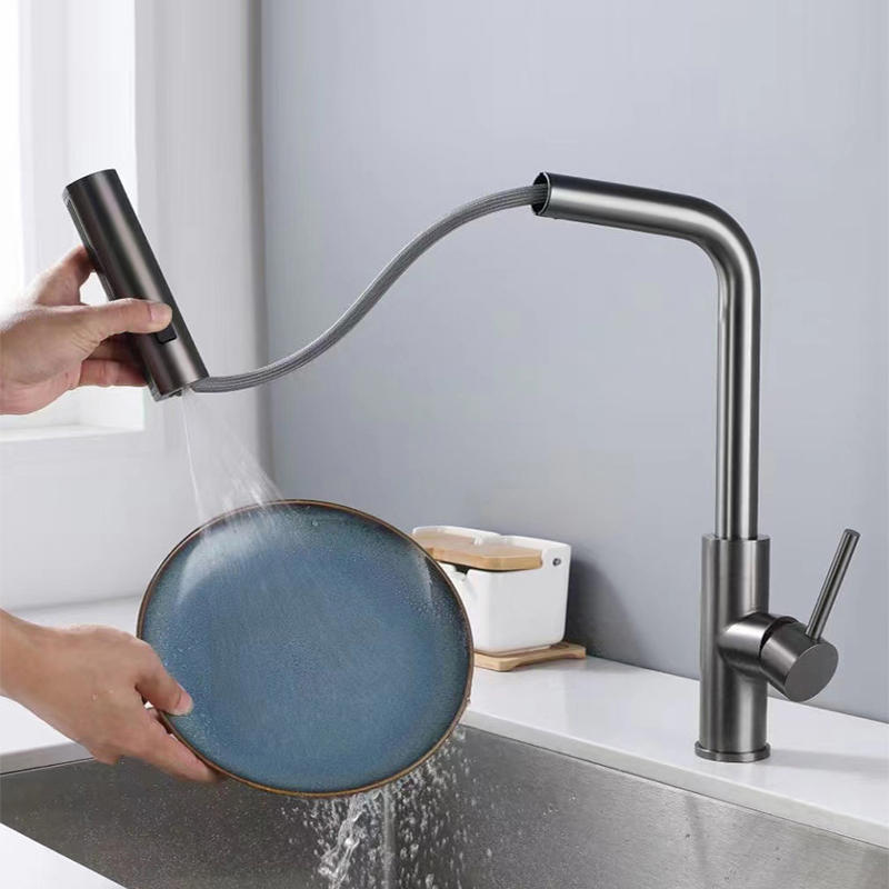 YCRAYS Чорні кухонні змішувачі Сірий Витягнути Обертання Водоспад Струмінь Обприскувач Головка Раковина Змішувач Щітка Нікл Водопровідний кран Аксесуар