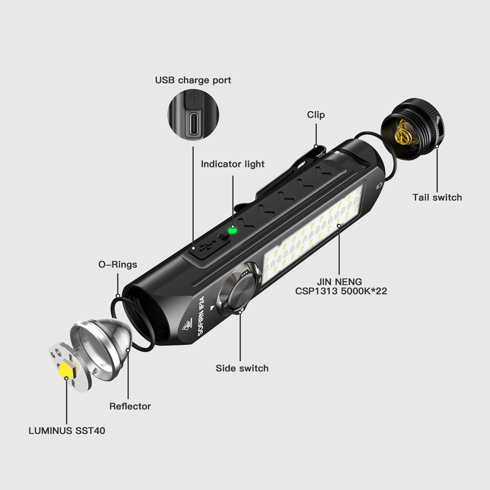 New Sofirn IF24 PRO SFT40 LED 1800lm Flashlights 18650 Rechargeable RGB Buck Driver Flood Spot Torch with Magnetic Tailcap