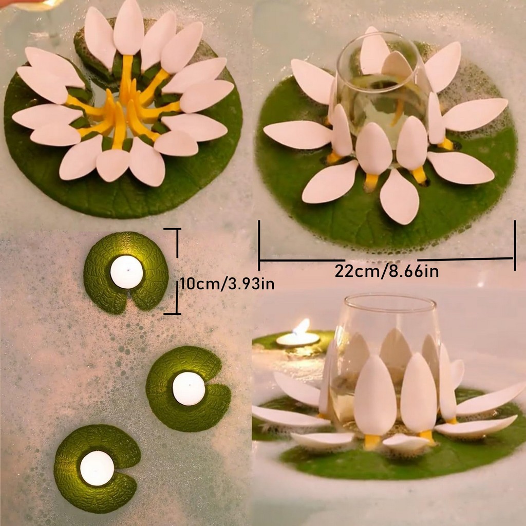 Floating Lotus Bath Wine Glass Holder and Candle Float Set for Tub Tealight Holder Wine Bottle Stand and Elegant Bathroom Decor