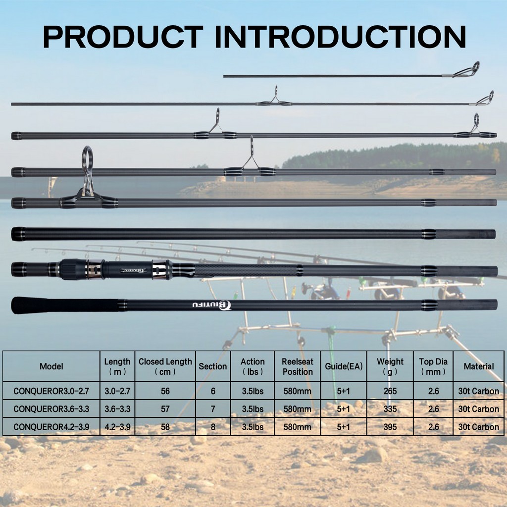 BIUTIFU 2Tips Carp Fishing Rod 3.5lb 7Sections 4.2/3.6/3.0m 30t Carbon Fiber Travel Throwing 60-150m Shore Casting Spinning Pole