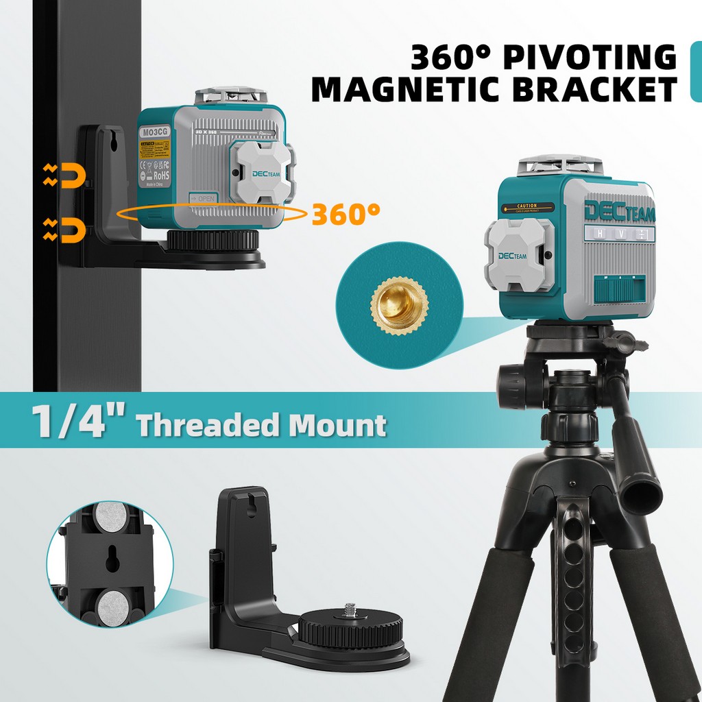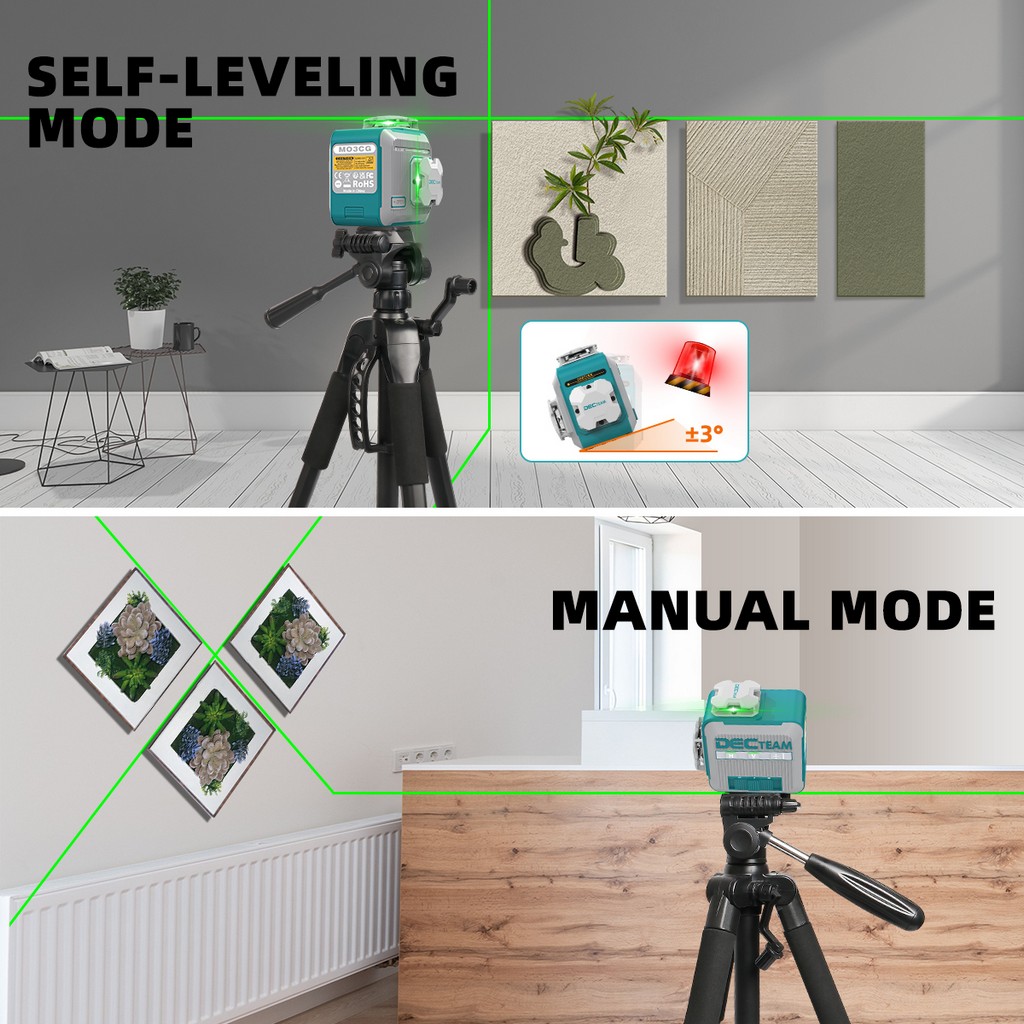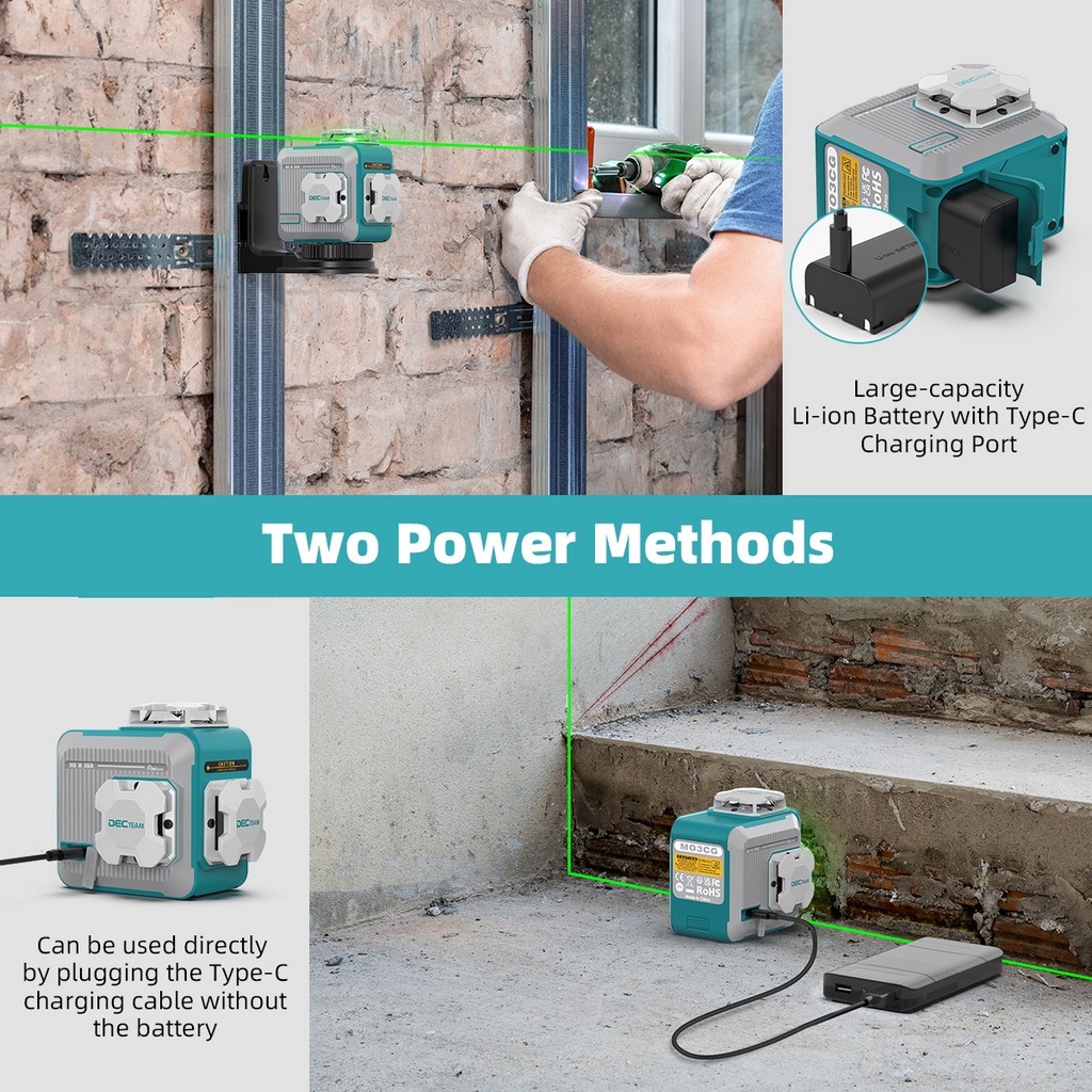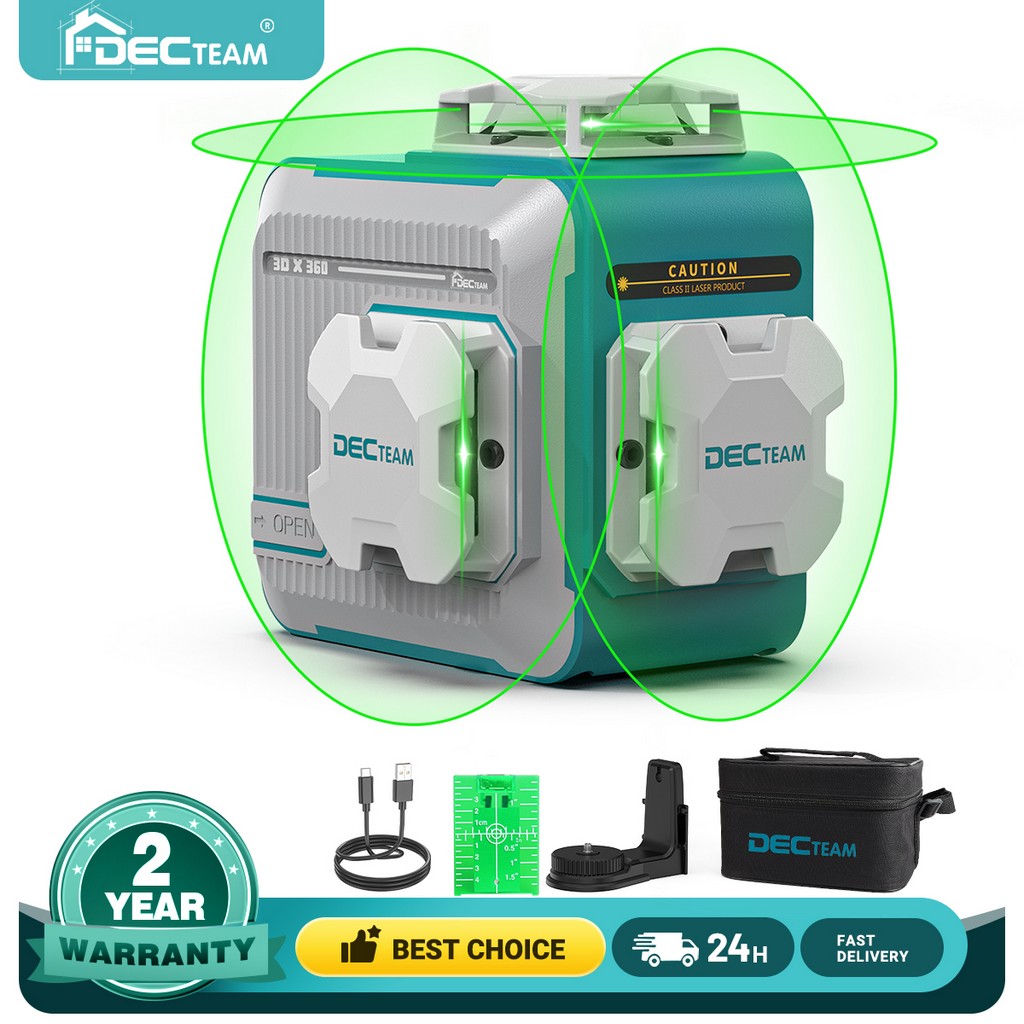 3D 12 Lines Self-leveling Laser Level DECTEAM 3 x 360° Green Beam Cross Line Laser Tool with Rechargeable Li-ion Battery M03CG