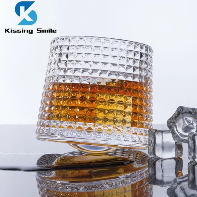 Creative Whiskey Glasses Durable Spinning Glassware Cocktails Wine Brandy Cup Water Juice Tea Mug Party Drinking Glass Tumbler
