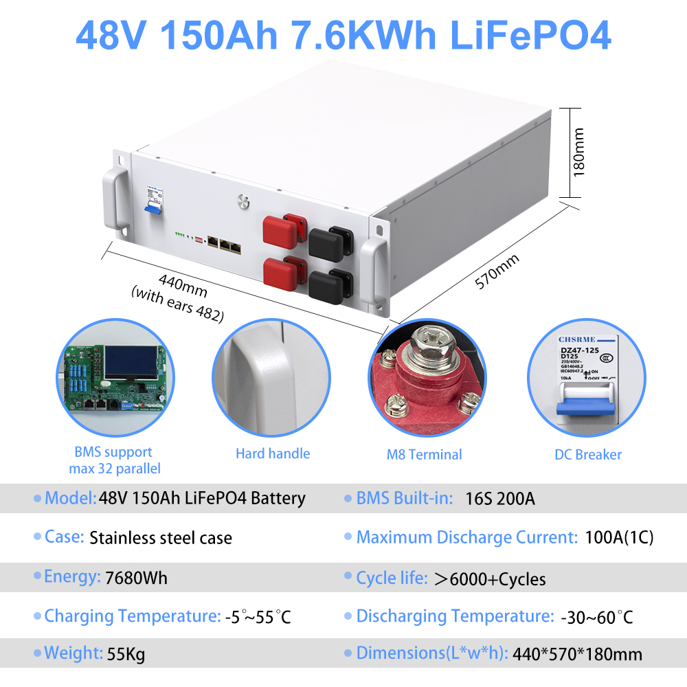 LiFePO4 48V 150Ah 7.6KW Lithium Battery Bluetooth 51.2V 100Ah 200Ah 6000+Cycles 32 Parallel CAN/RS485 EU UKR Fast delivery