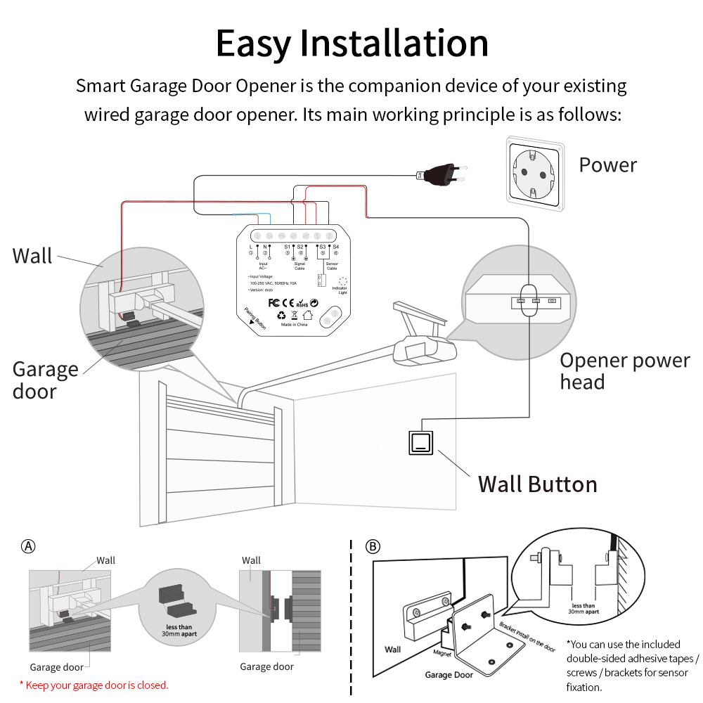 LoraTap Tuya Smart Life Garage Door Sensors Opener Controller WiFi Switch Alexa Opening Home Remote Control Contact Voice Portal
