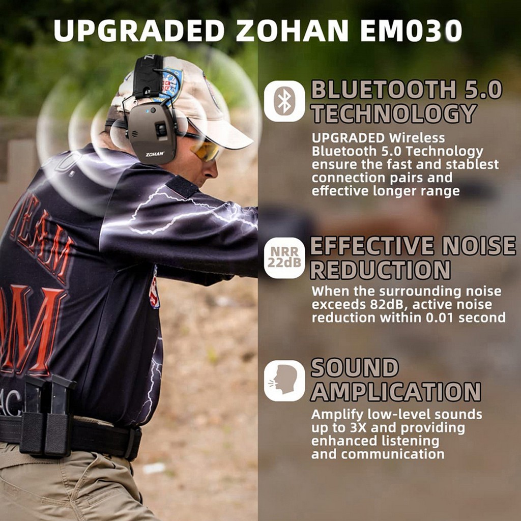 ZOHAN 5.0 Bluetooth Electronic Tactics Shooting Earmuffs Hearing Protection Anti-Noise Sound Amplification For Hunt Shoot Range
