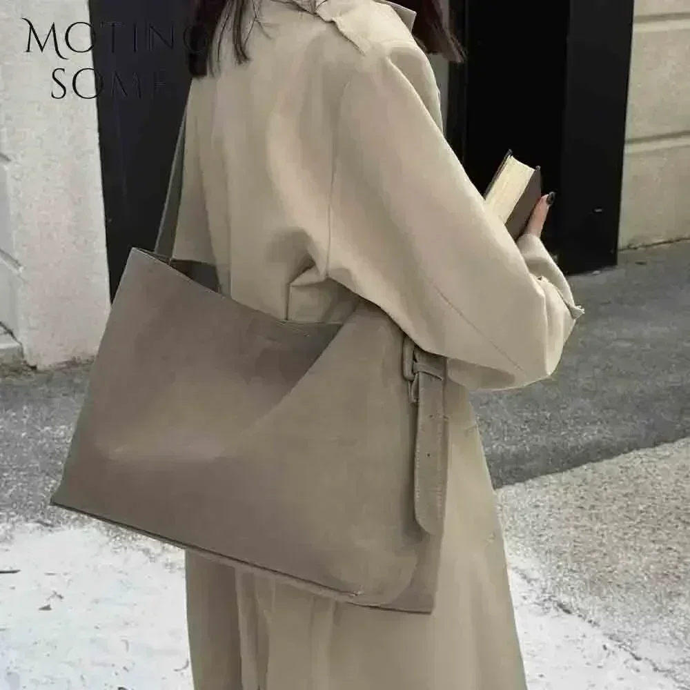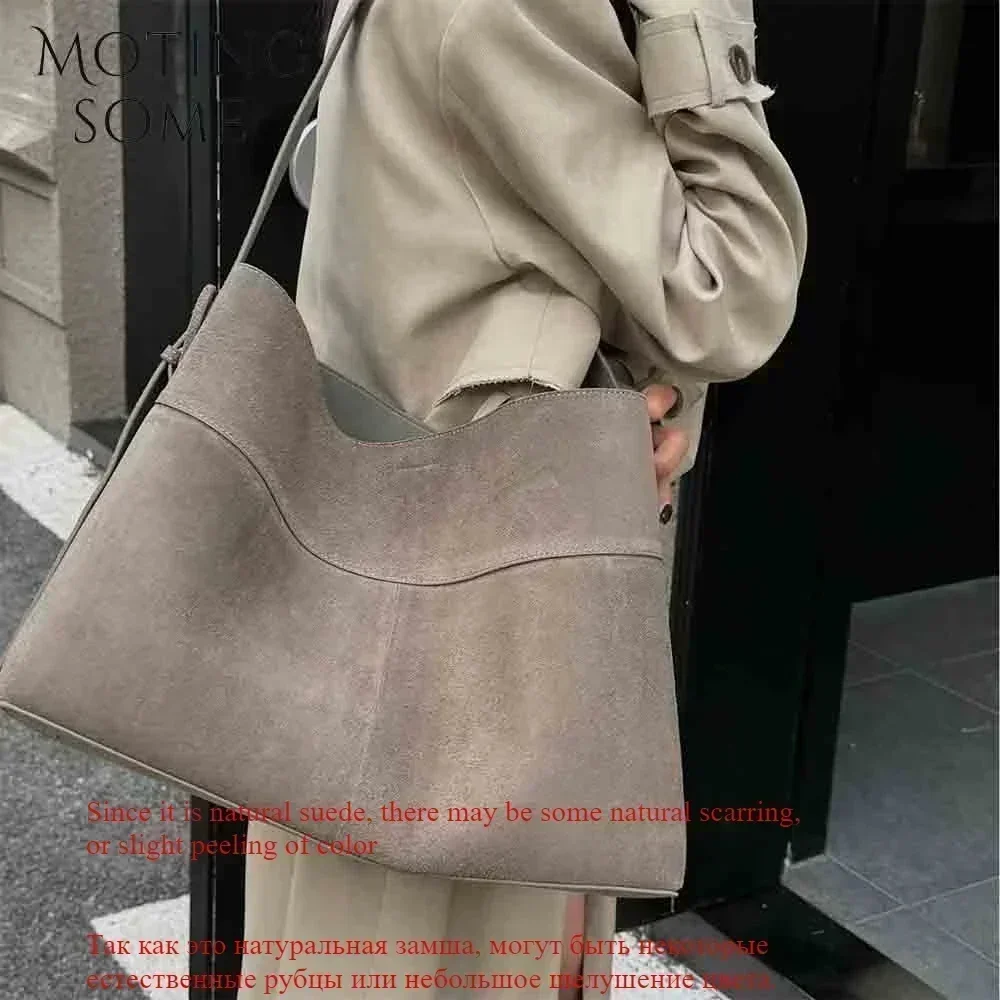 Motingsome Oversize Women Bag Luxury Suede Leather Winter Bags Frosted Cow Skin Handbag and Purses Retro Lady Tote 2024 New
