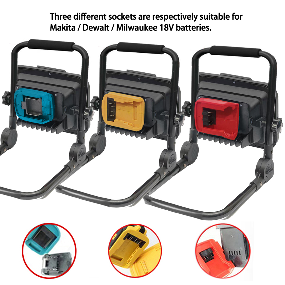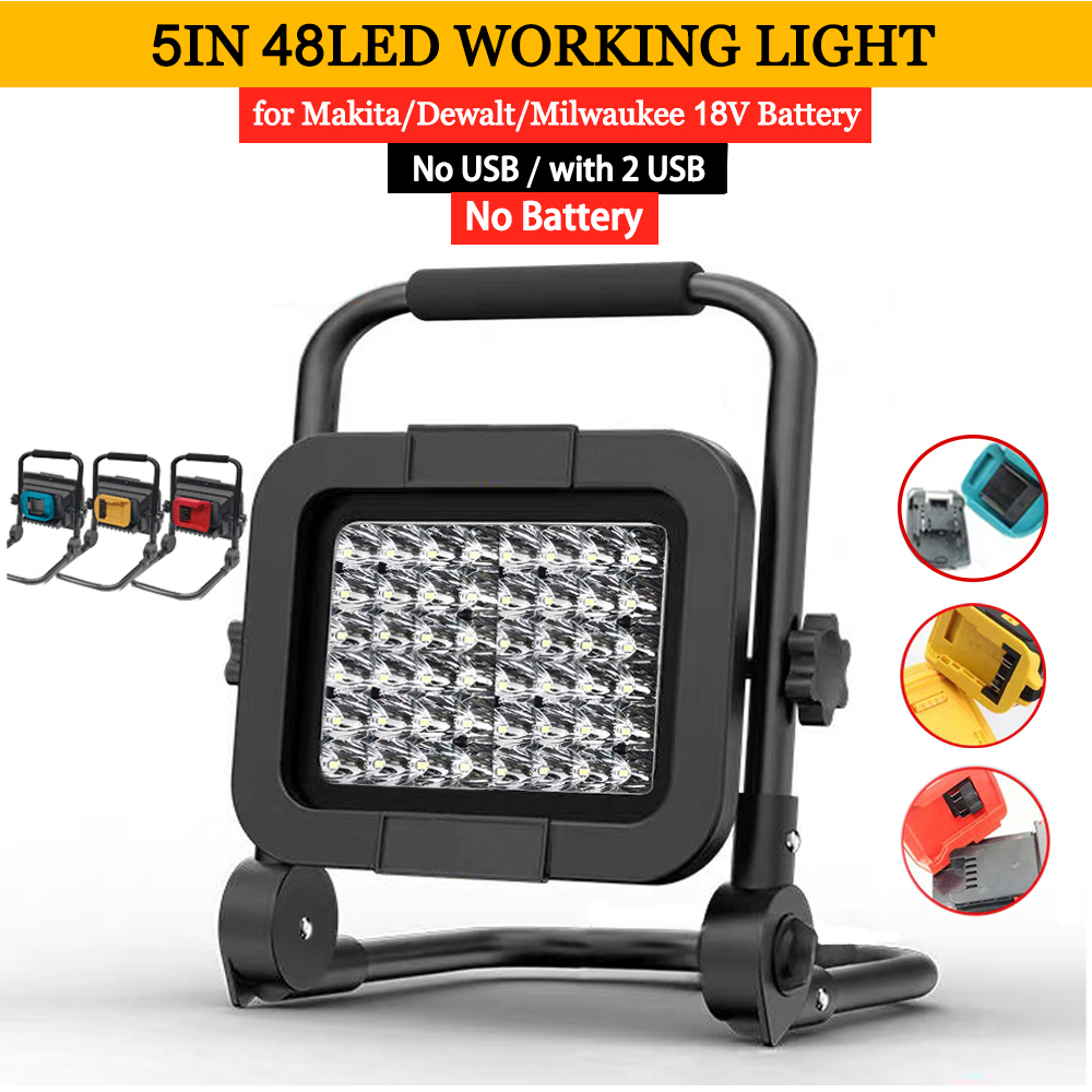 Led Light Cordless Outdoor Spotlight Working Fishing Handheld Emergency ToolLight Fit Makita/Dewalt/Milwaukee 18V Battery(0/2USB