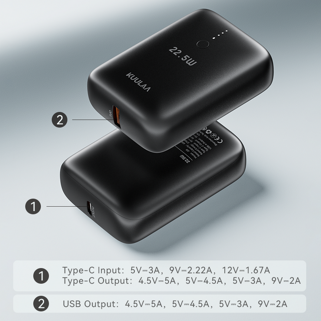 KUULAA 22.5W 10000mAh Mini Power Bank PD3.0 QC3.0 Fast Charger for iPhone16/15/14 Samsung S24/S23 Xiaomi Huawei Portable Battery