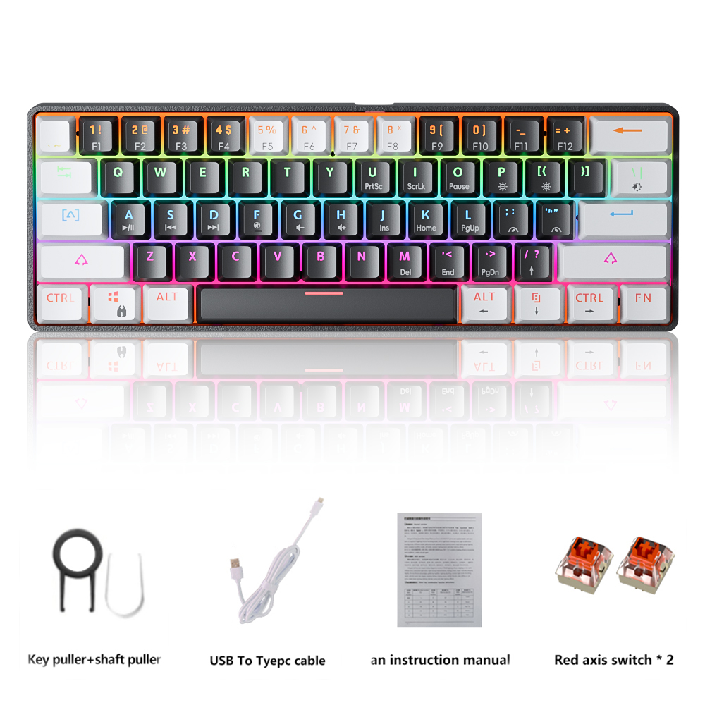 MUCAI MK61 USB Gaming Mechanical Keyboard Red Switch RGB Backlit Hot Swappable 61 Keys Wired Detachable Cable