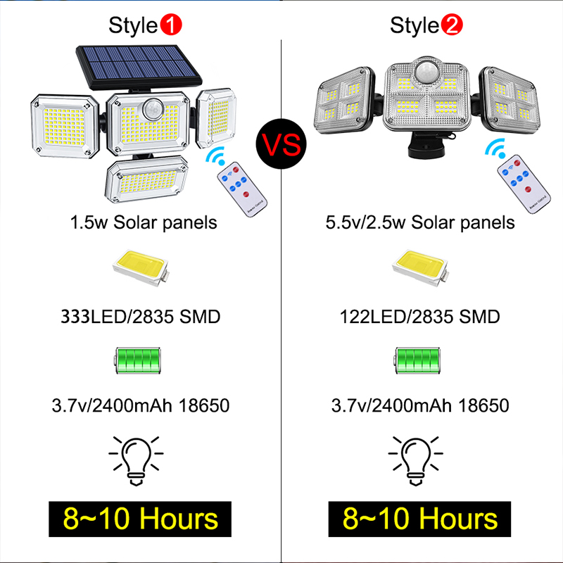 20w Solar Light 122/333led IP65 Waterproof Outdoor Indoor Solar Garden Lamp With Adjustable Head Wide Lighting Angle With 3 Mode