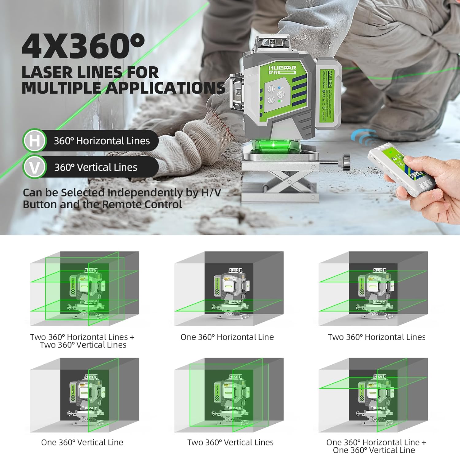 Huepar ZK04CG-L 4D Cross Line Laser Level Professional ±2mm/10m Accuracy Self-leveling Green Laser Tools With Li-ion Battery