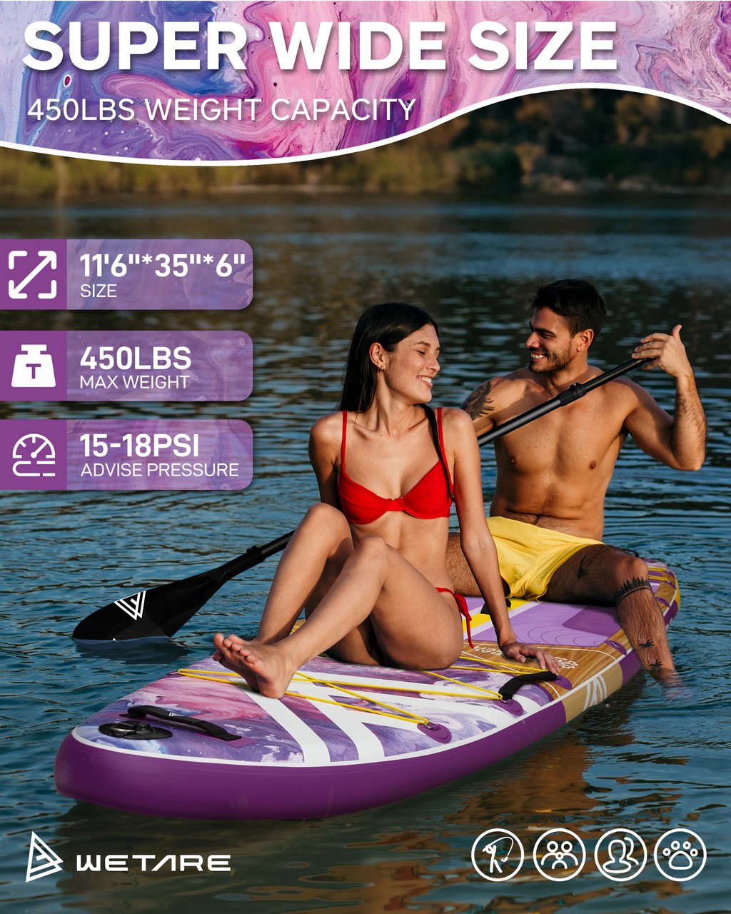 Myboat WETARE Waterproof Extra Wide Inflatable Paddle Board 11'6''x35''x6''Adult Standing Style Aquatic Fishing With Accessories