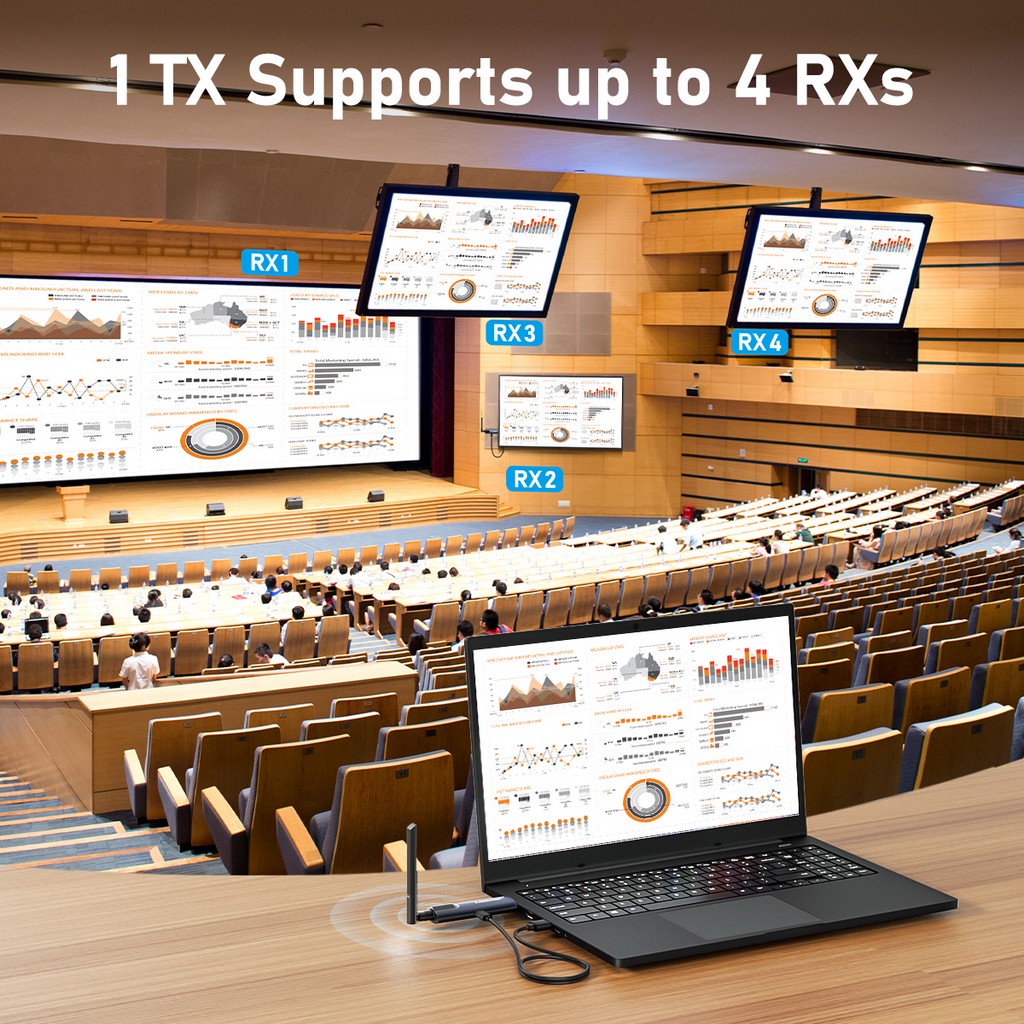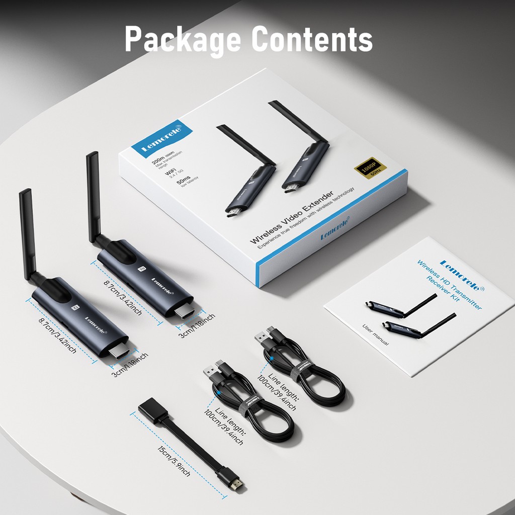 Lemorele 5G 200M Wireless HDMI Transmitter and Receiver Meeting Bluetooth Transmitter Audio for Laptop TV Projector Monitor Came
