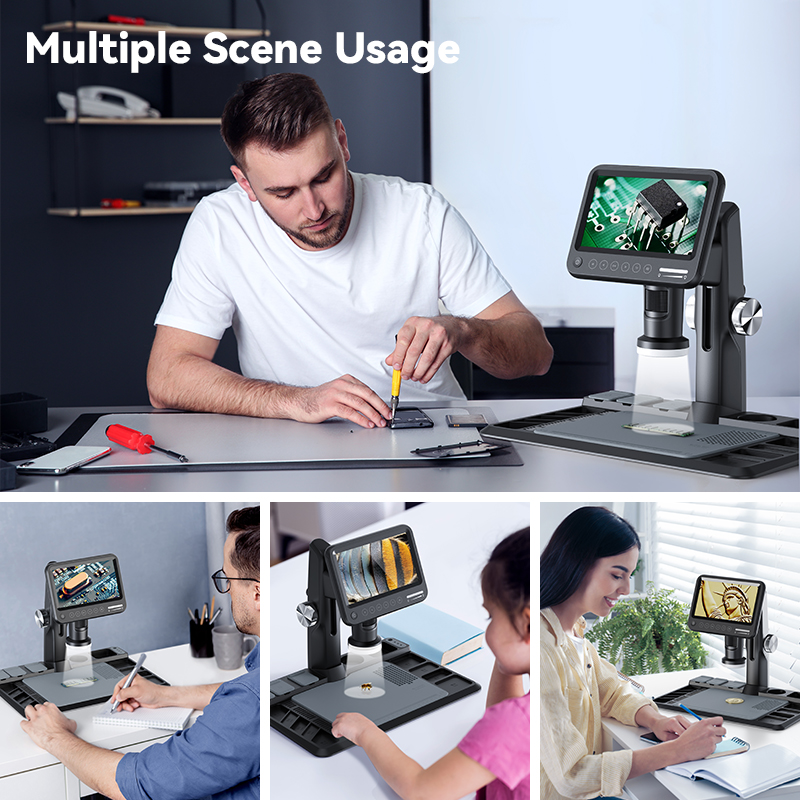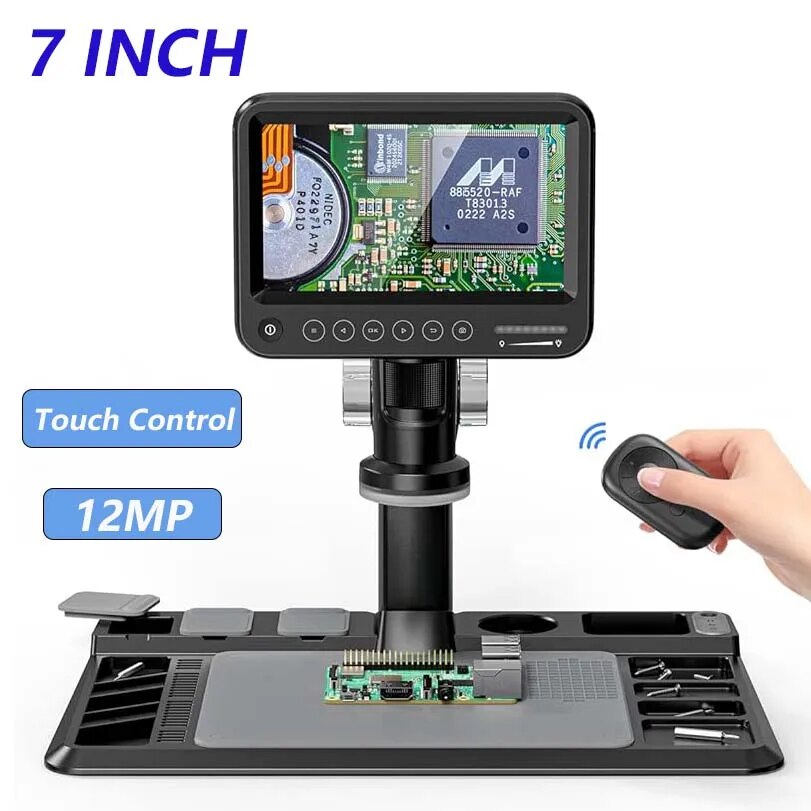 1600X Digital Microscope 12MP Electronic Video Microscopes 7 Inch IPS Screen Soldering Microscope with 28 LEDs with Windows/Mac