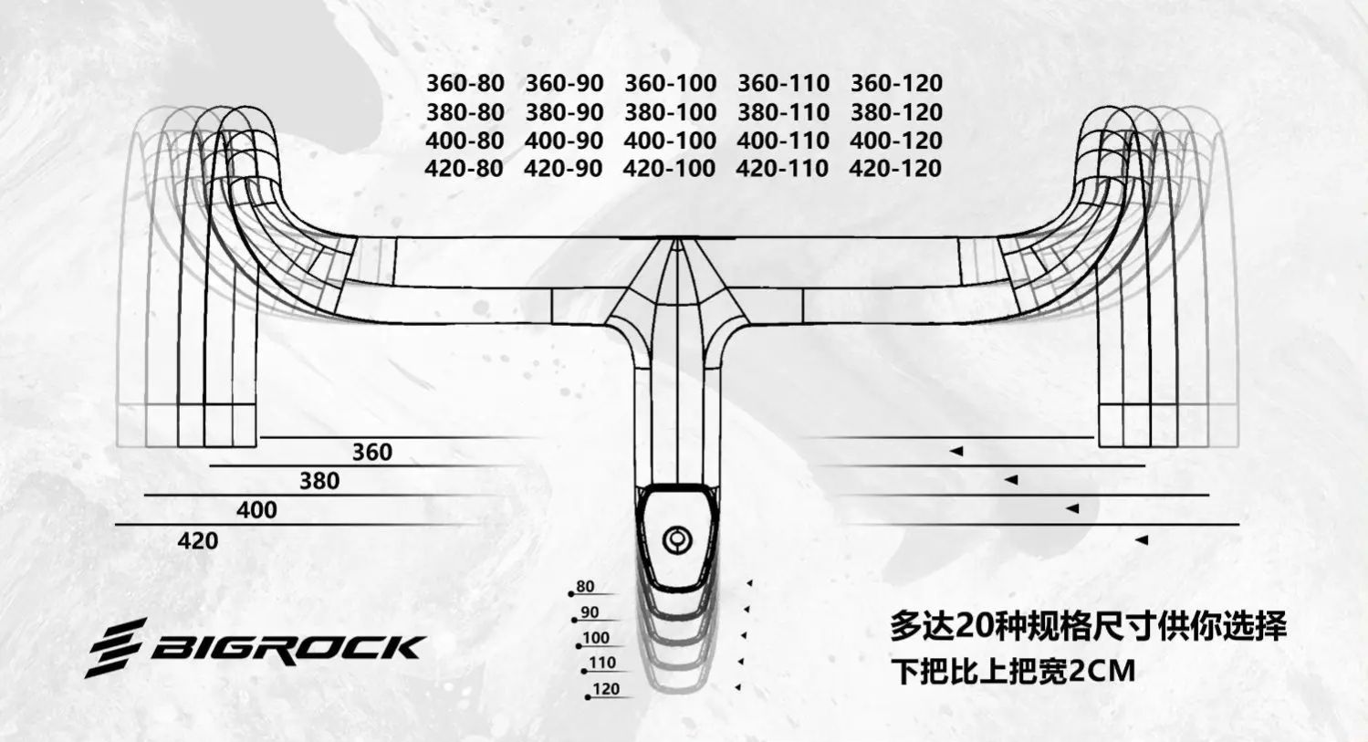 BIGROCK carbon fiber road handlebar gravel handlebar full internal routing handlebar 360/380/400/420 for OD1 28.6mm&OD2 31.8mm