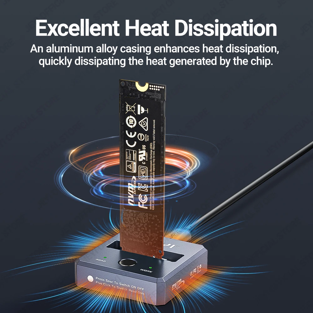 JEYI M.2 SSD Reader, NVMe & SATA to USB-C PCIe SSD Docking Station USB 3.2 10Gbps Solid Disk Adapter With Write Protection