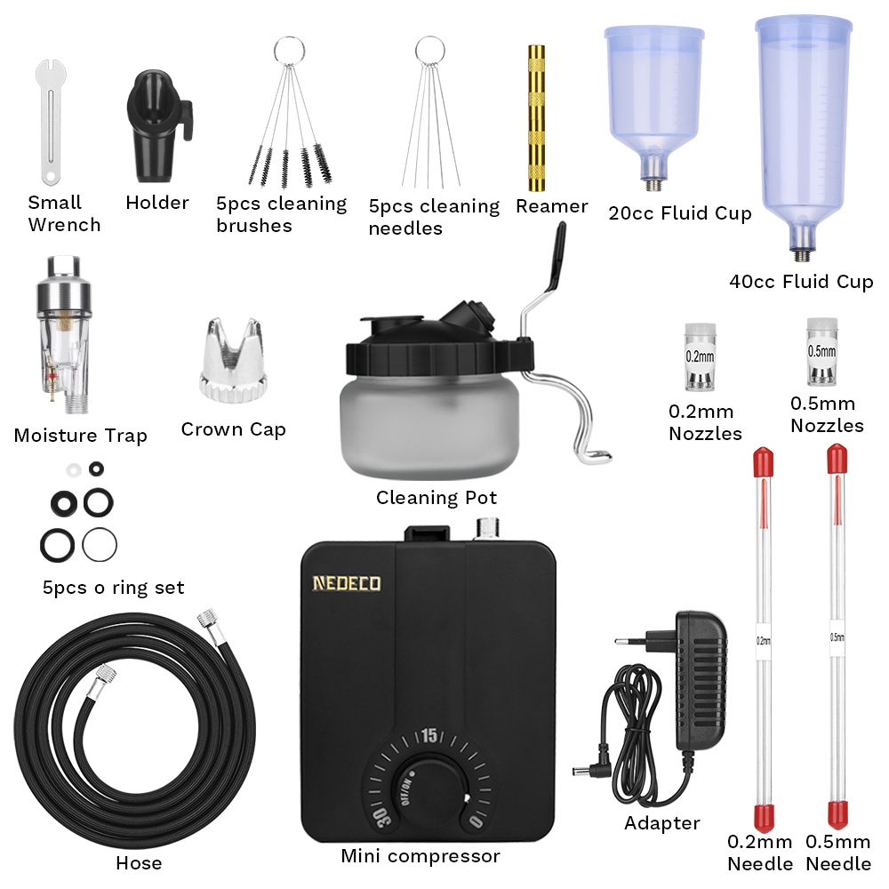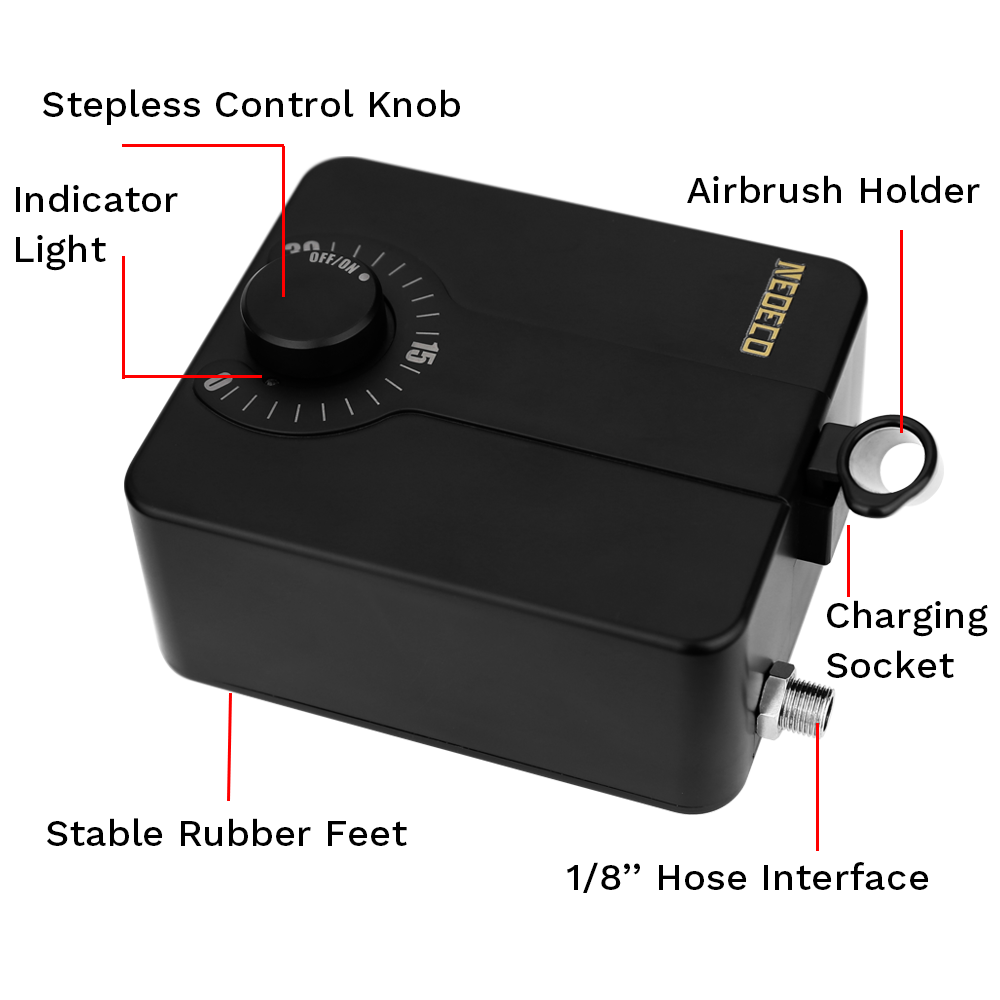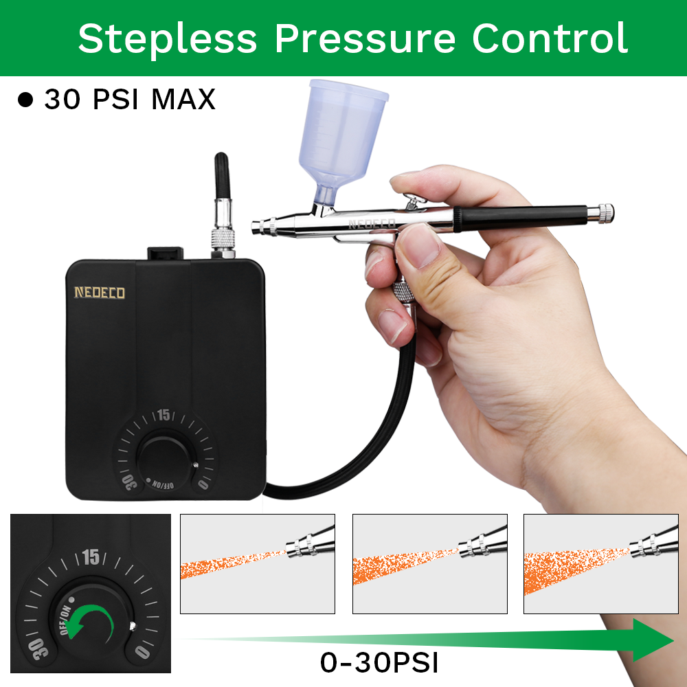 Комплект аерографів подвійної дії з комплектом компресора автоматичного зупинки безступінчастого керування 30PSI високого тиску для малювання моделі макіяжу нігтя