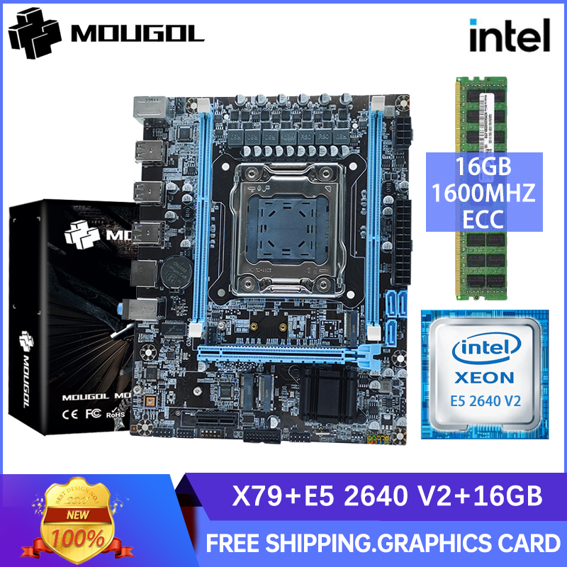 MOUGOL Нова материнська плата X79 з комплектом процесора Intel Xeon E5 2640 V2 і двоканальною оперативною пам’яттю DDR3 ECC 1600 МГц USB3.0 SATA2 Computer Combo