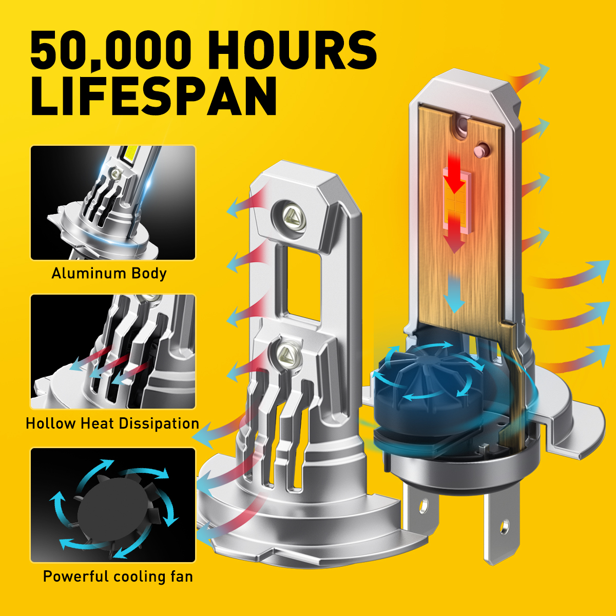 AUXITO 2Pcs Кращі світлодіодні лампи Turbo H7 з вентилятором CSP Chip високої потужності 100 Вт 20000LM для Mercedes W211 W203 Автомобільна фара Фара