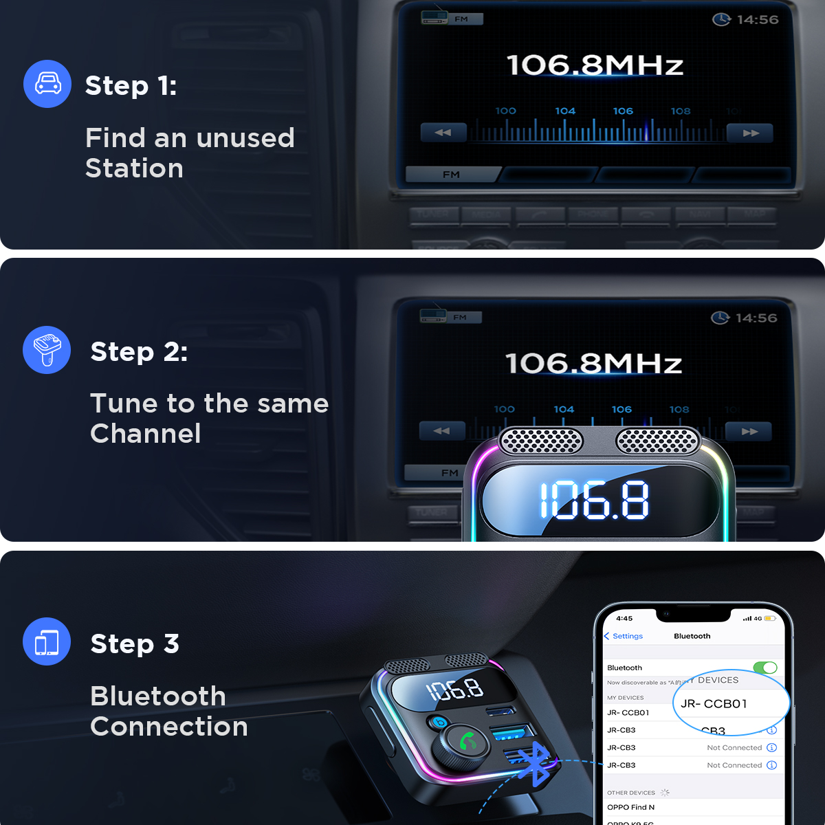 Передавач JOYROOM Bluetooth 5.3 FM для автомобіля 48 Вт PD&QC3.0 Адаптер автомобільного зарядного пристрою Bluetooth & U Disk, Подвійні мікрофони, Hands-Free Calling
