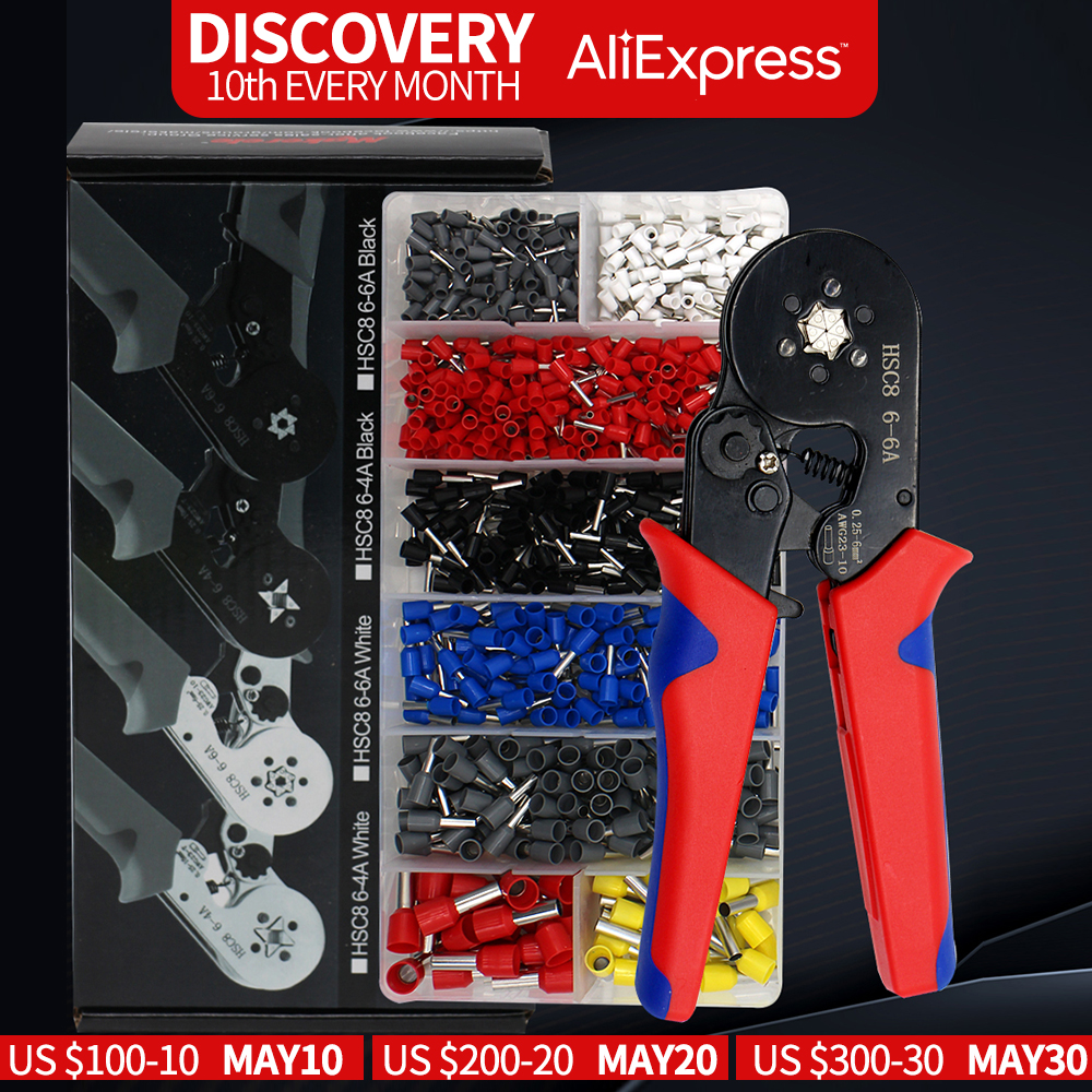 Ferrule Електричний термінал Обжимний дріт Інструменти Плоскогубці Обжимний HSC8 6-6A 6-4A Push роз'єми Побутовий комплект з коробчатими затискними наборами