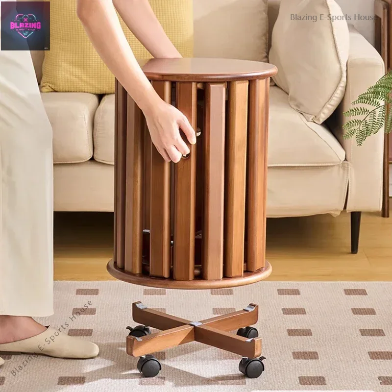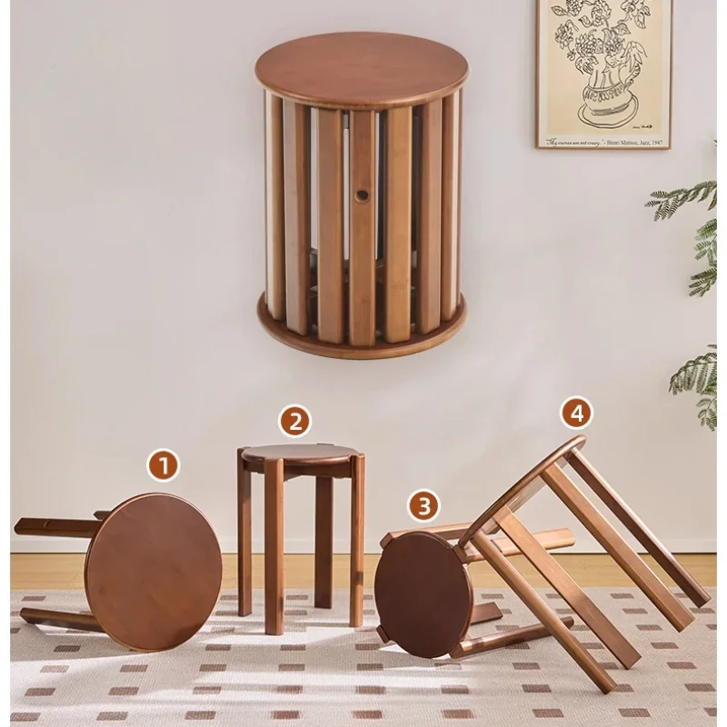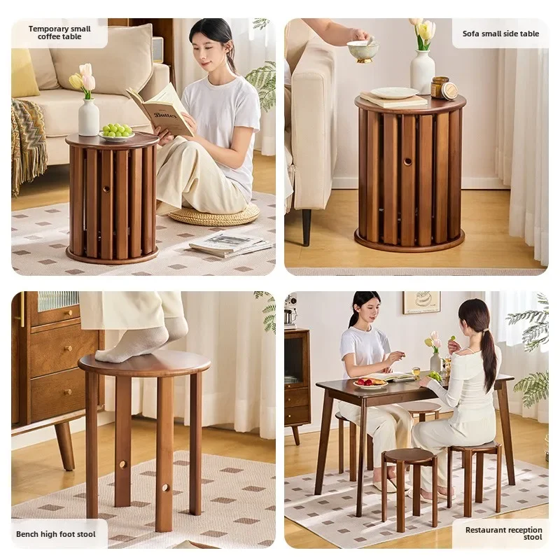 Natural Bamboo Dining Stool Creative Four in One Round Stools Living Room Stacked Side Table with Mobile Base Modern Furniture