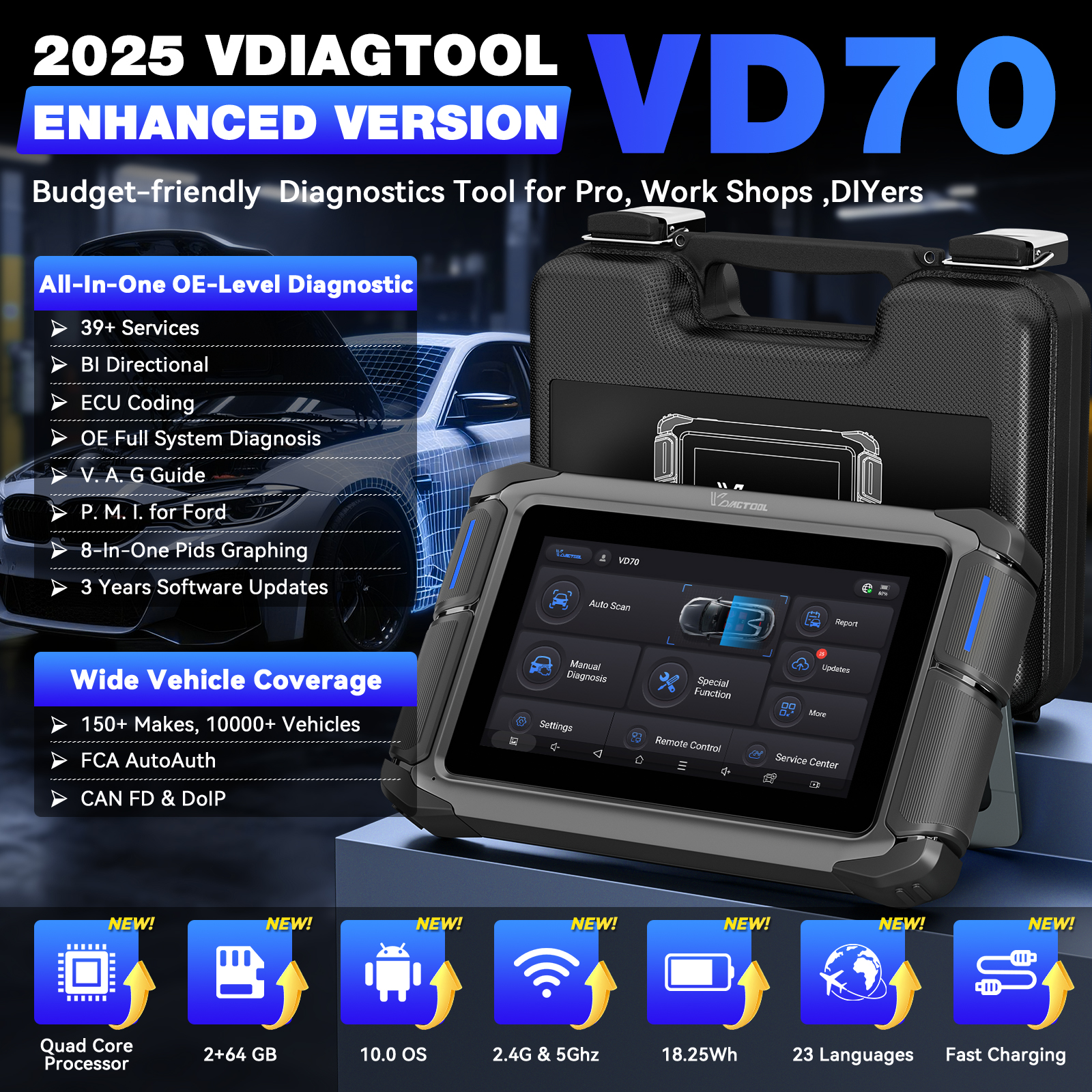 VDIAGTOOL VD70 All Systems Car Diagnostic Tools Key Programmer Automotive Bidirectional Scanner ECU Programming/Coding FCA DOIP