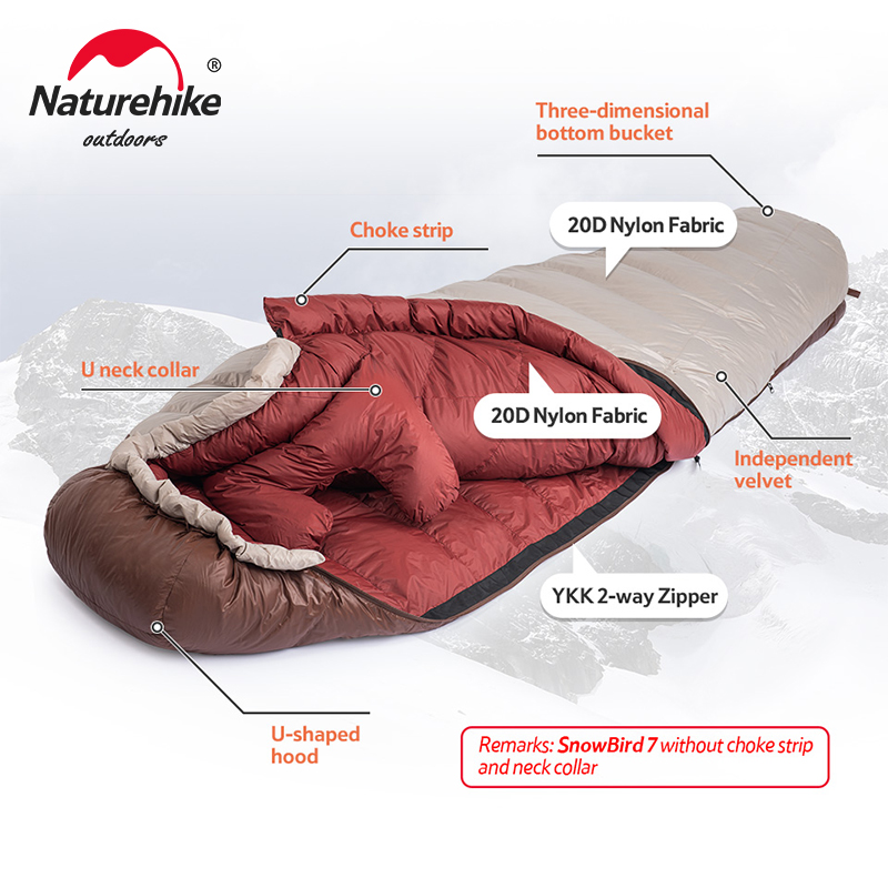 Naturehike Snowbird 7 2 Sleeping Bag Mummy Down Ultralight 4 Season Sleeping Bag Camping Duck Down -3 -7 Winter Sleeping Bag