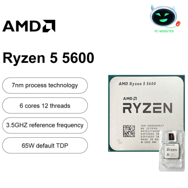 NEW AMD Ryzen 5 5600 R5 5600 3.5 GHz 6-Core 12-Thread CPU Processor 7NM L3=32M 100-000000927 Socket AM4 Graphics Chips Processor