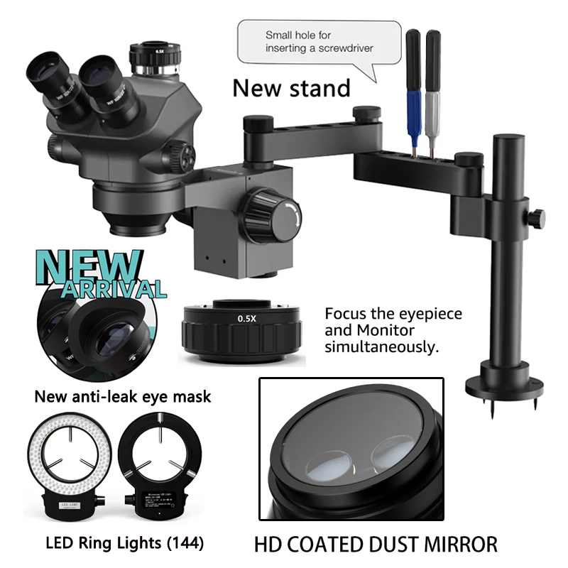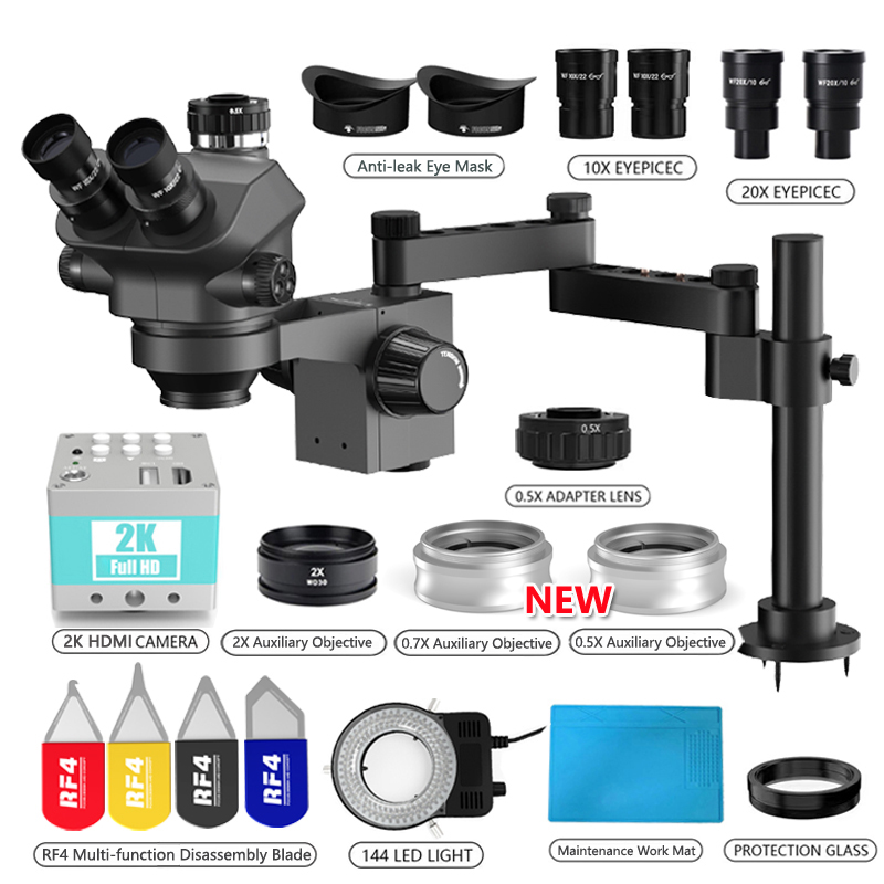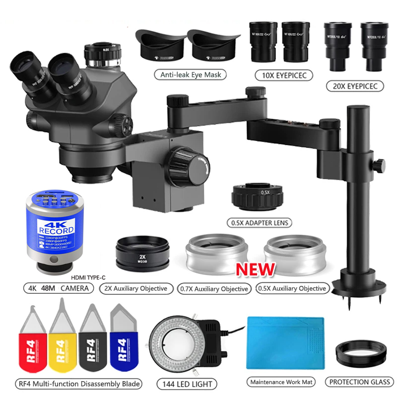 3.5-200X Simul-Focal Stereo Trinocular Microscope Set 4K 2K 1080P HDMI VGA USB TF Video Camera Clamp Folding Extension Type Base