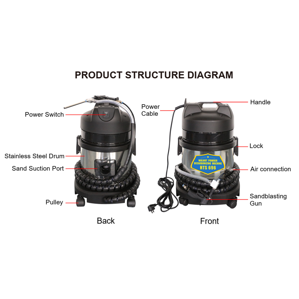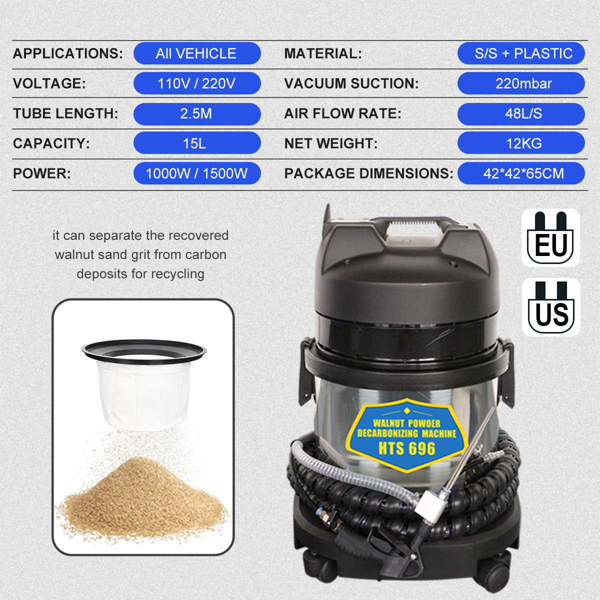 Пилосос для очищення деталей автомобіля із допомогою частинок горіха