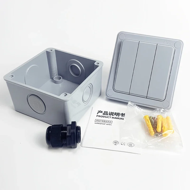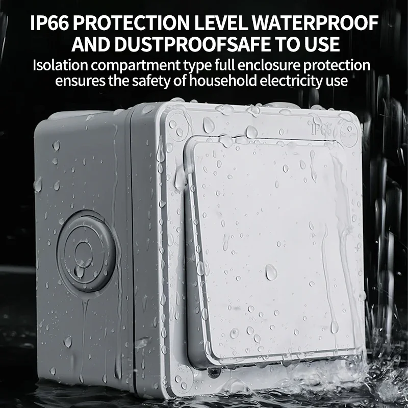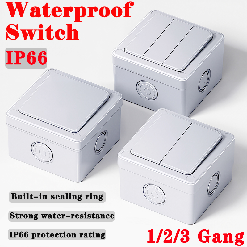 IP66 Weatherproof Outdoor Wall Push Button Switch 1/2/3 Gang 16A Waterproof Dust-proof Power Switch for Home and Garden