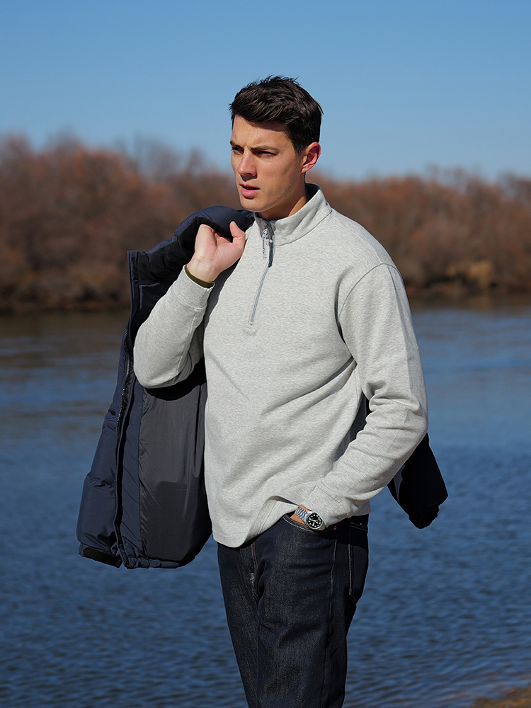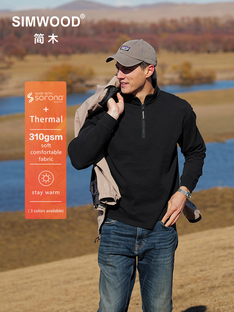 SIMWOOD 2025 Autumn New Regular Fit Lightweight 310gsm Sorona Thermal Fabric Half Zip Sweatshirts Men Pullovers
