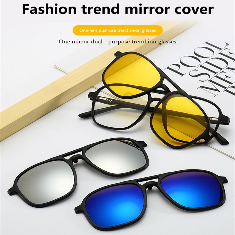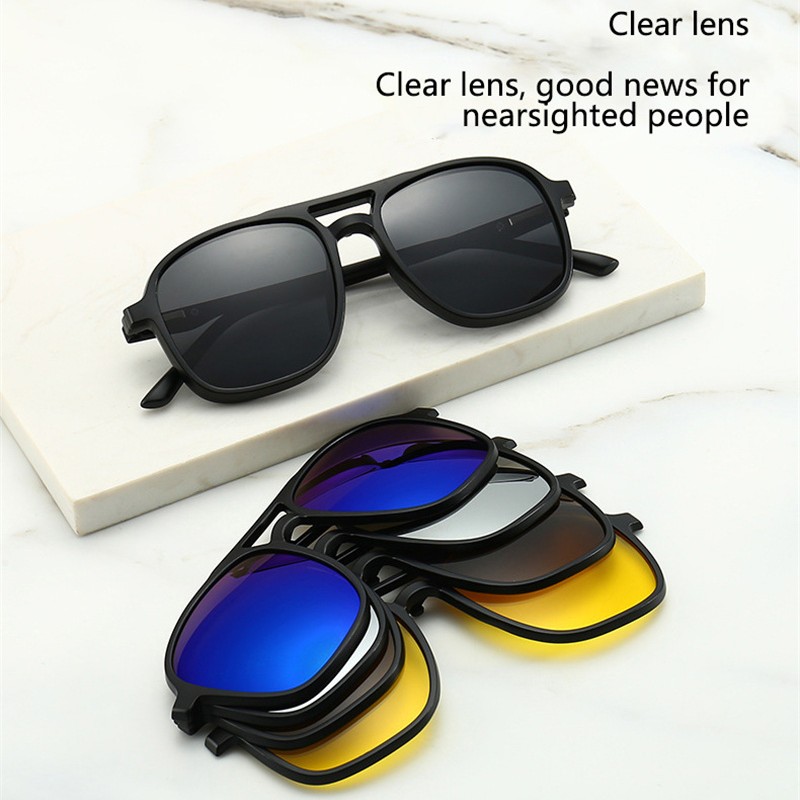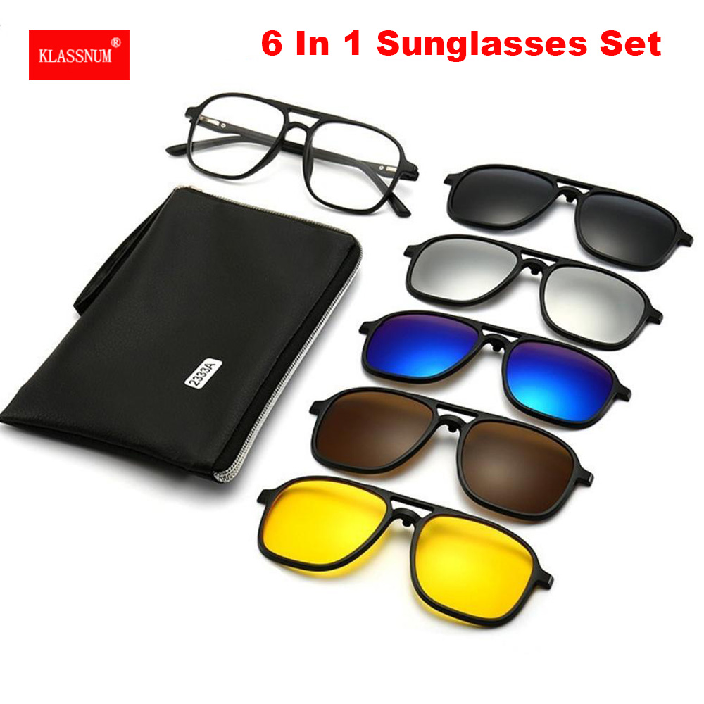 Magnetic Clip Sunglasses 6 In 1 Set Mirror Polarized Clip On Sun Glasses Male Female Driving Night Vision Goggles Sunglasses New