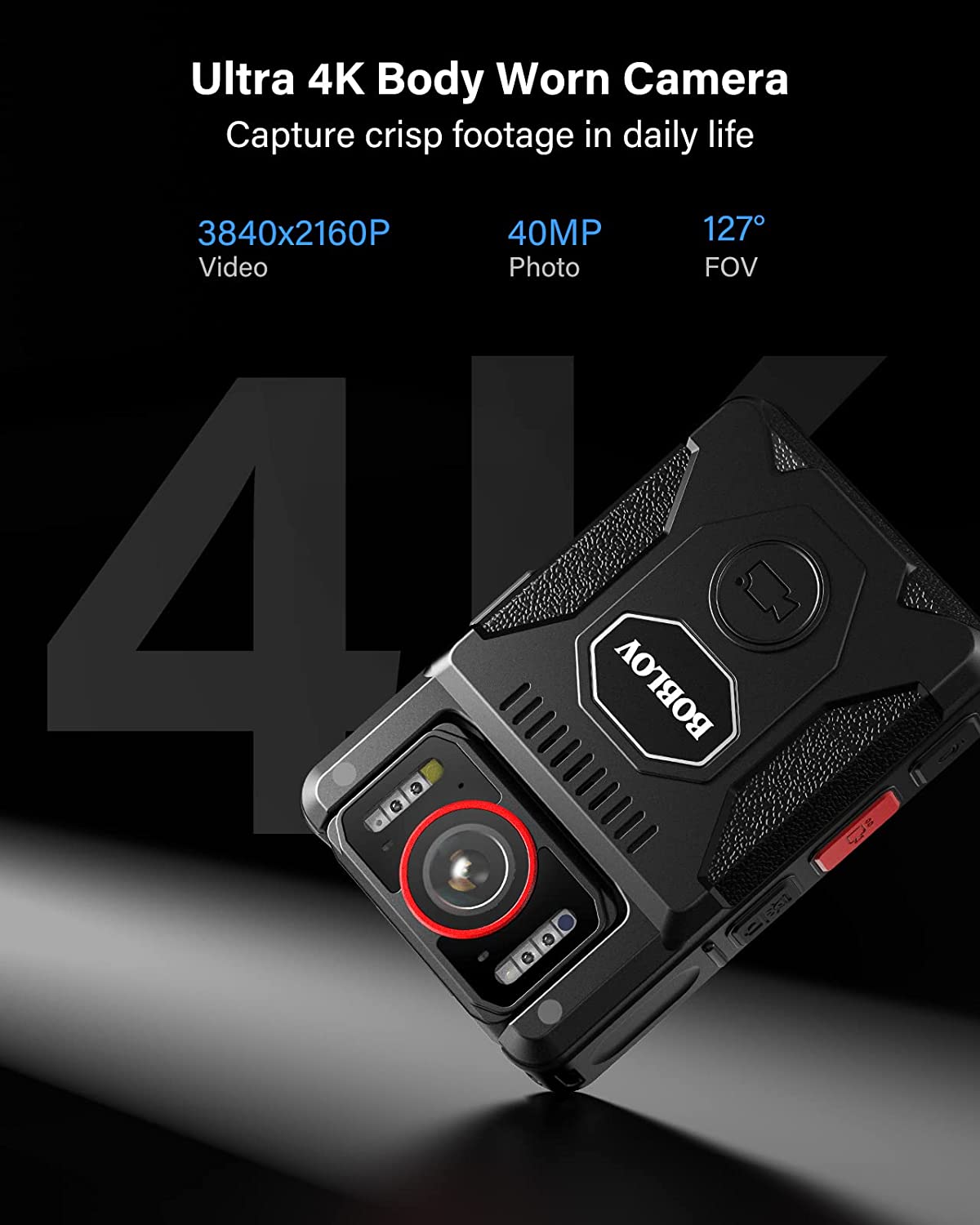 BOBLOV M7 Pro 4K GPS Body Mounted Camera 128GB Video Recorder 180° Rotate Camera 4000mAh Battery 15 Hours Recording GPS Bodycam