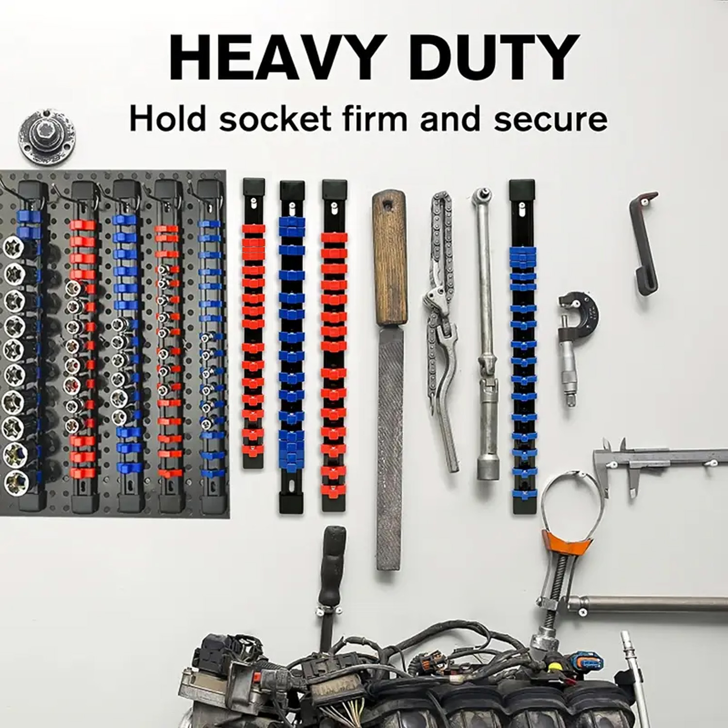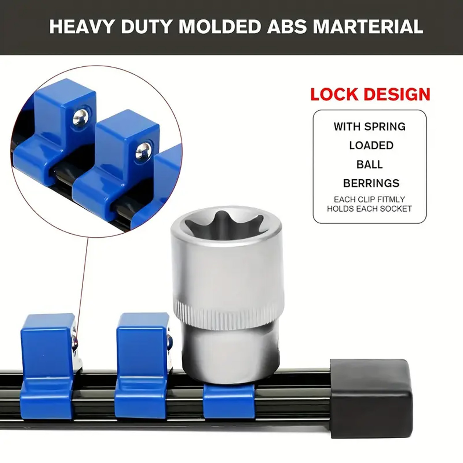 360° Swivel ABS Socket Organizer 1/4Inch 3/8Inch 1/2Inch Premium Quality Socket Clip Rail Holder socket organizer tools Blue&Red
